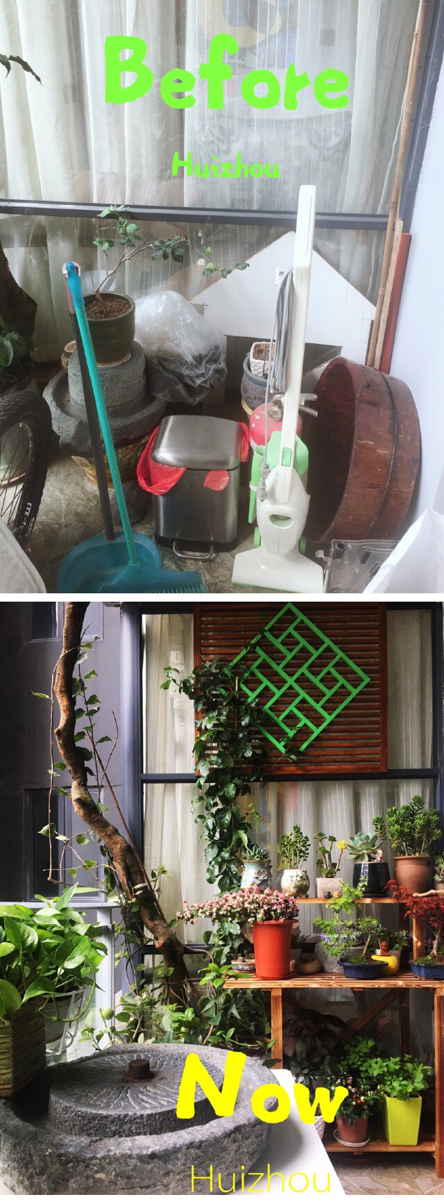接下来就是组合拳了~哼哼哈兮🤣老家搬了根颇具艺术感的荔枝木(计划让三角梅爬藤),某宝上淘了个三层花架,最后到花场选择些花,重点来了……选得几乎都是萌萌哒多肉,感觉一不小心让老婆给带进了多肉这个坑了,刚刚入坑就是各种配土、光照、通风,什么扦插、老桩……接踵而来了!长征路上,只能迈开腿,管住嘴、向前冲囖!🧐最后附上阳台改造前后对比,小有成就,初有成效,欢迎大家多多提宝贵意见🤞🏻