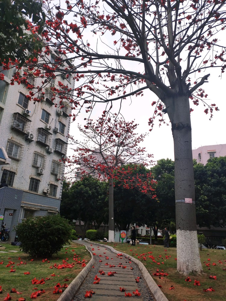 骑车回来,总要望望小区的木棉树;走在木棉花洒落的小路上,唯美、感动、珍贵。
