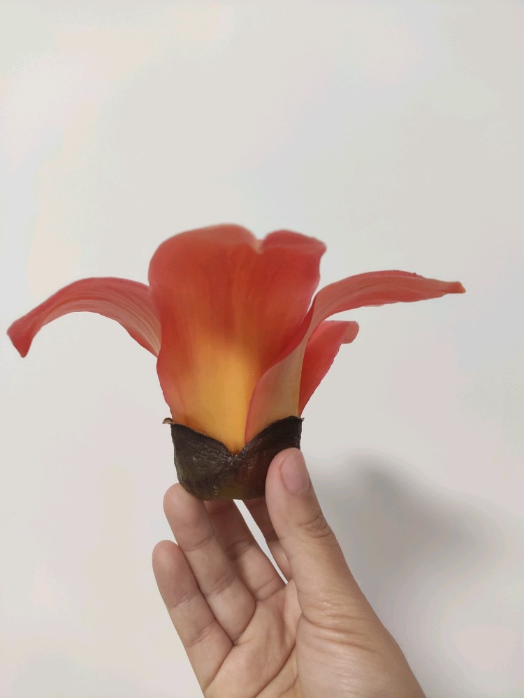 木棉树树形高大,木棉花花朵艳丽,红艳艳地缀满枝头,远望,满树火红如同英雄花一般,即便落下,花型依旧完好。爱她伟岸的身躯,爱她挺拔的花托,爱她火红的花瓣,美丽大方。细嗅花朵,甜而不腻,清热解毒可入膳入药。木棉花的花语是珍惜身边的人,珍惜眼前的幸福。