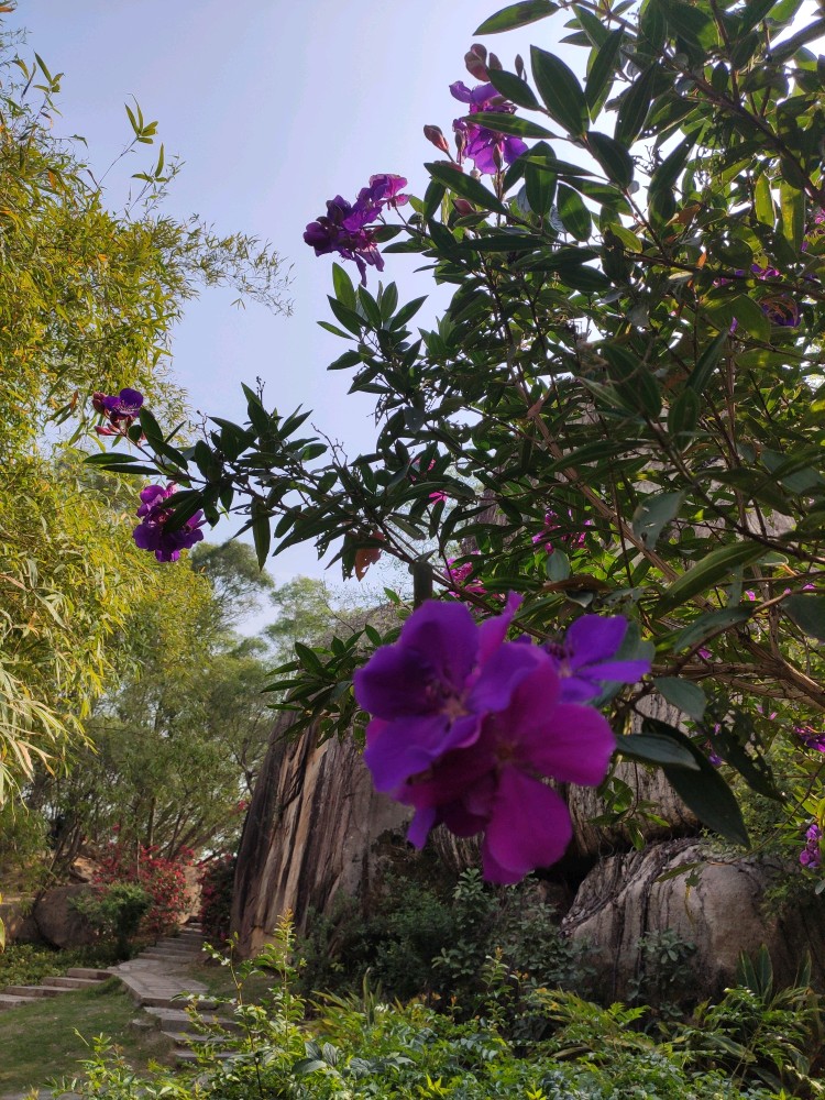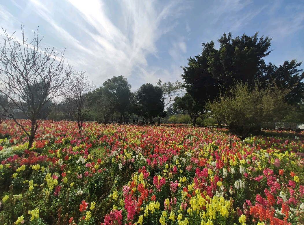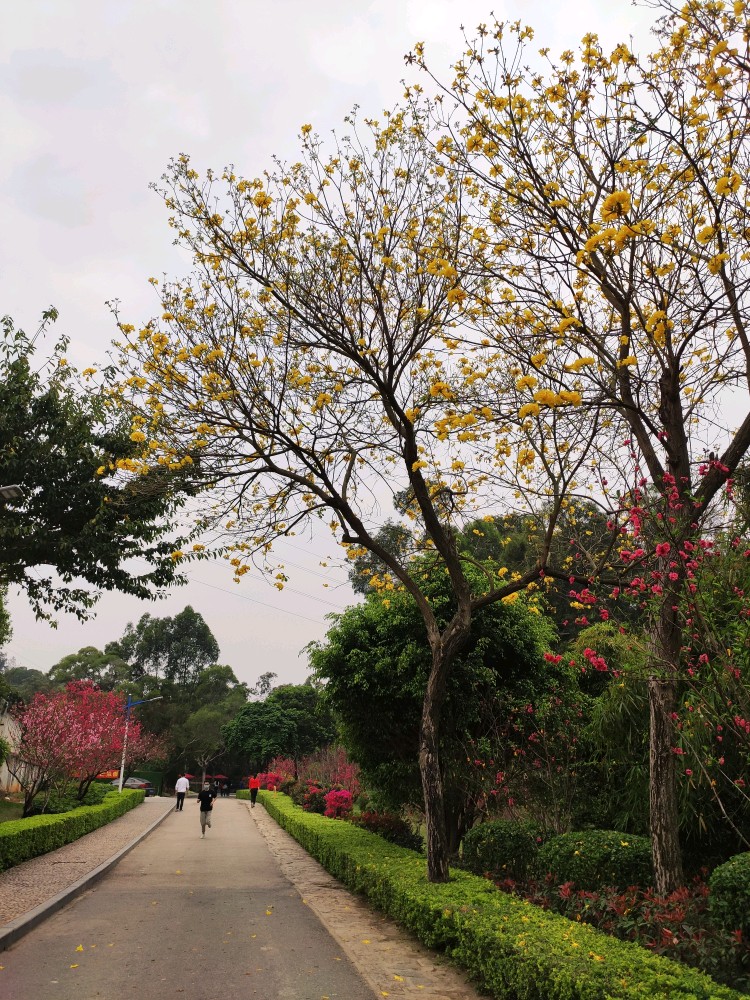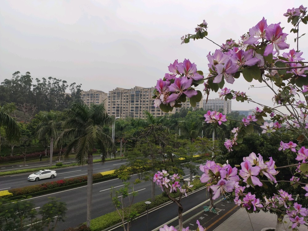 一树树嫩黄,娉婷婀娜;一树树火红,高大挺拔;一道道艳紫如长虹包裹天桥,灿烂而温暖。走在街道,走在巷口,走在公园,可爱的花草树与你不期而遇。