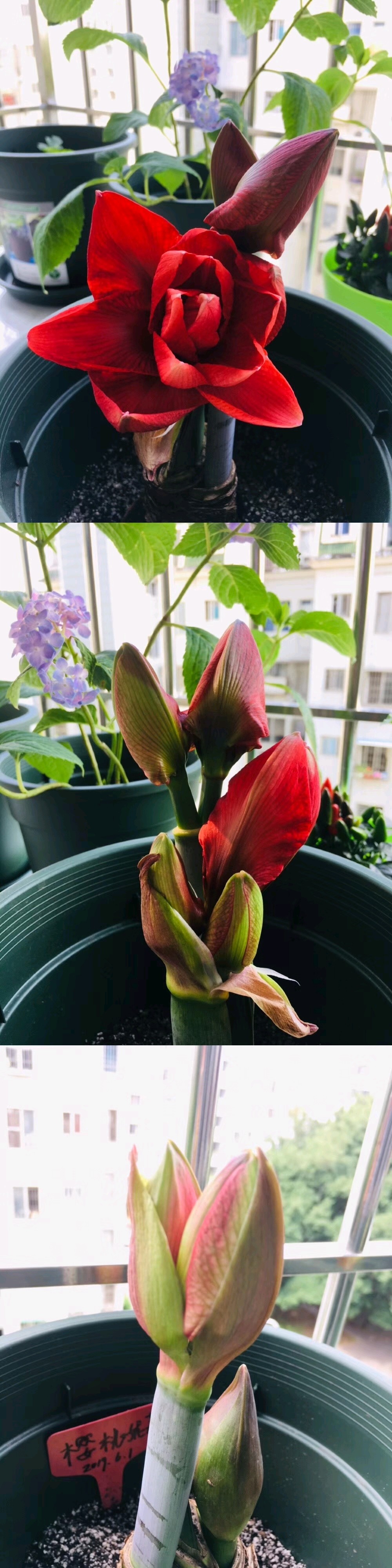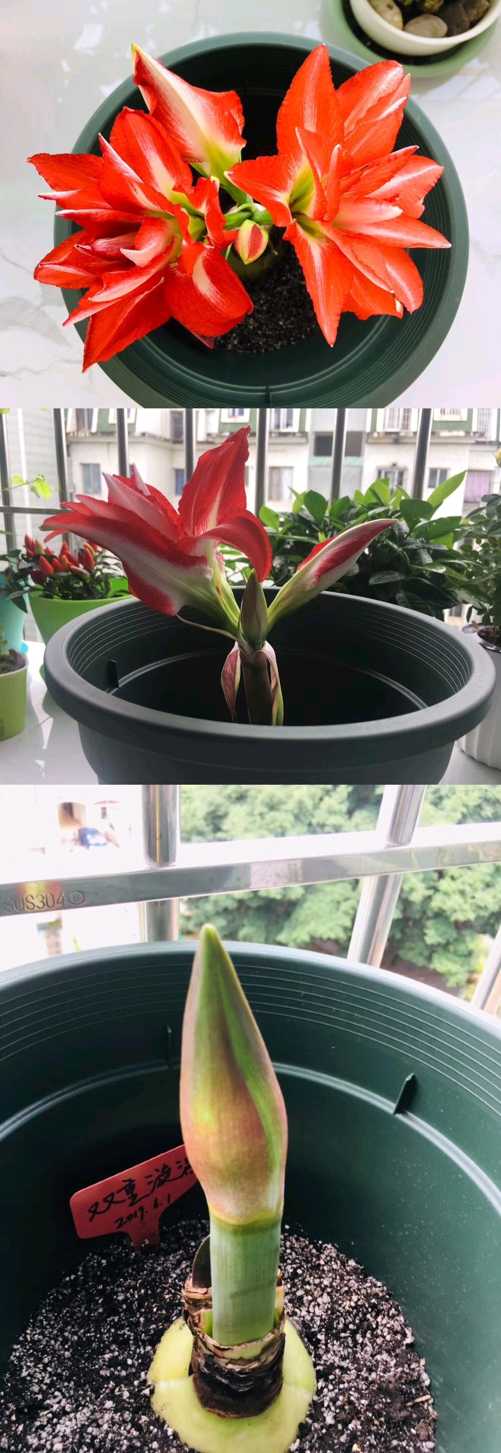 2019年6月1日种下朱顶红,从种下到花剑粗壮到萌出第一朵花,不到2周时间,接着一连串的花骨朵冒出。一剑双花还是一剑多花,就看花剑怎么开奖了。朱顶红你说得算。