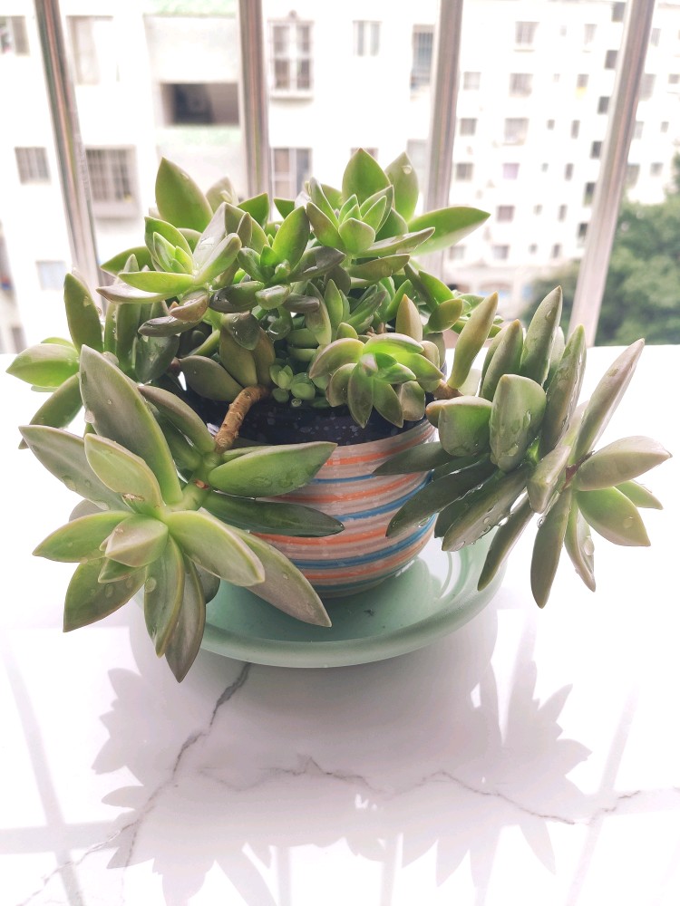从2015年开始养多肉,瓶瓶罐罐真不少。纯白瓷盆,造型瓷盆,条纹瓷盆,大的小的圆的方的高颈的扁平的等等,随着心性和喜好不断增加。