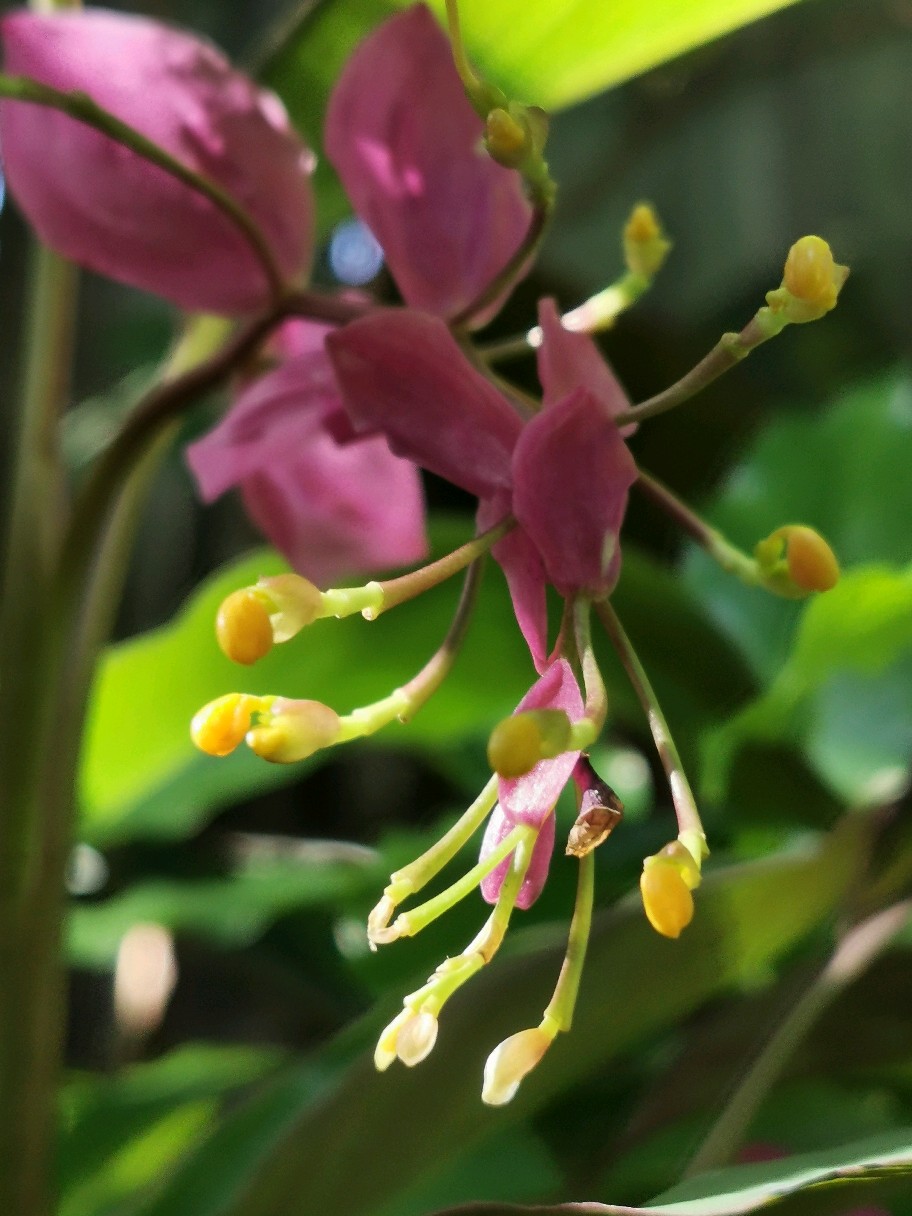 美苞舞花姜(Globba winitii C.H.Wright),姜科舞花姜属多年生草本植物,花序上花的紫色苞片,鲜艳夺目