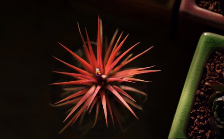 一个月没管它,让它跟景天一起晒,想不到变红了,还开了fa。