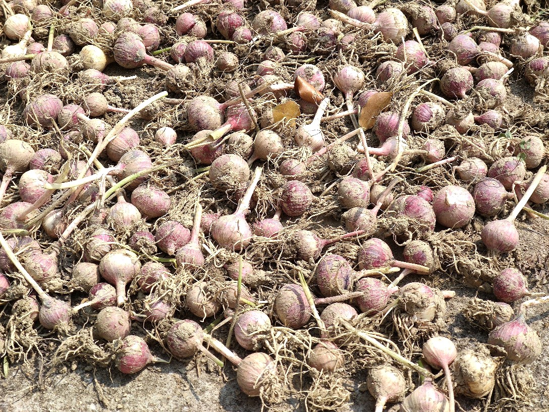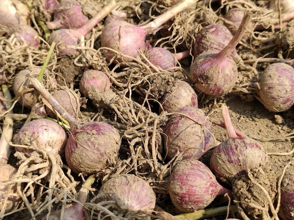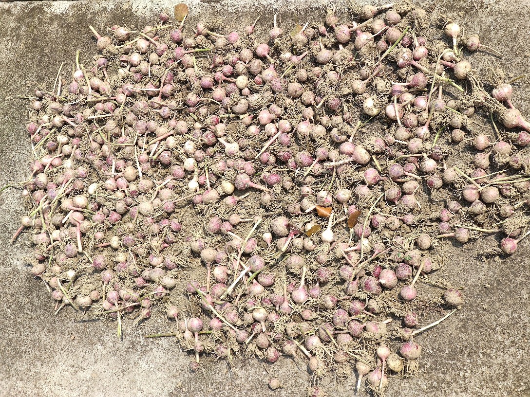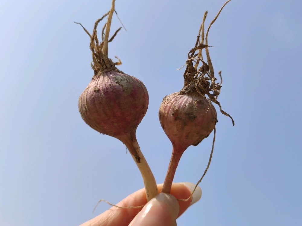 这是爷爷种的蒜,一个一个清一色紫皮独头蒜,因为要空地出来种西瓜,这些独头蒜就不要了。本来是直接留地里肥田,婶婶觉得浪费把它拿回了家。我看着它怪是可爱,又想起在北京吃的糖蒜,本有意想尝试做几颗糖蒜的,洗个澡出来又不想弄了