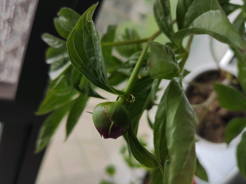 我妈说是牡丹,可是她家里的牡丹不会这种胶。我摸着黏糊糊的,像胶一样。而且打了花苞又一直没有开。请大神解惑。👏