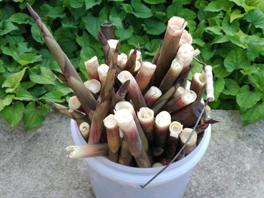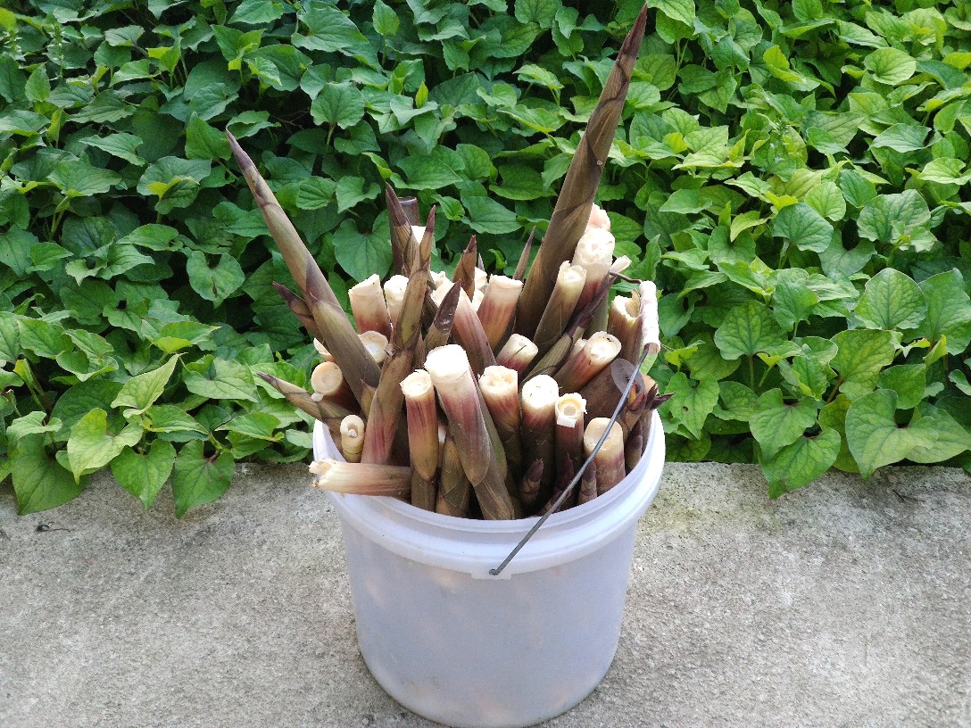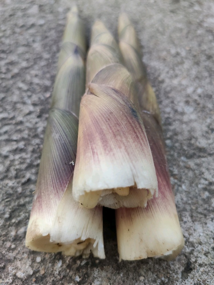 小竹笋是老爸昨天带回来的,一个个圆滚滚胖憨憨的样,看的我是欣喜若狂,然后老爸又拿了几根样板笋说,像这样的我嫌太短都没拔那边满地都是,听的我是热血沸腾,恨不得立马就奔过去把它一扫而光。