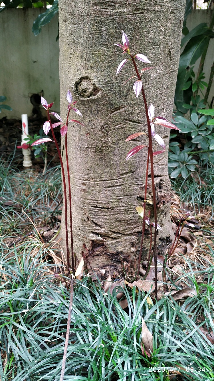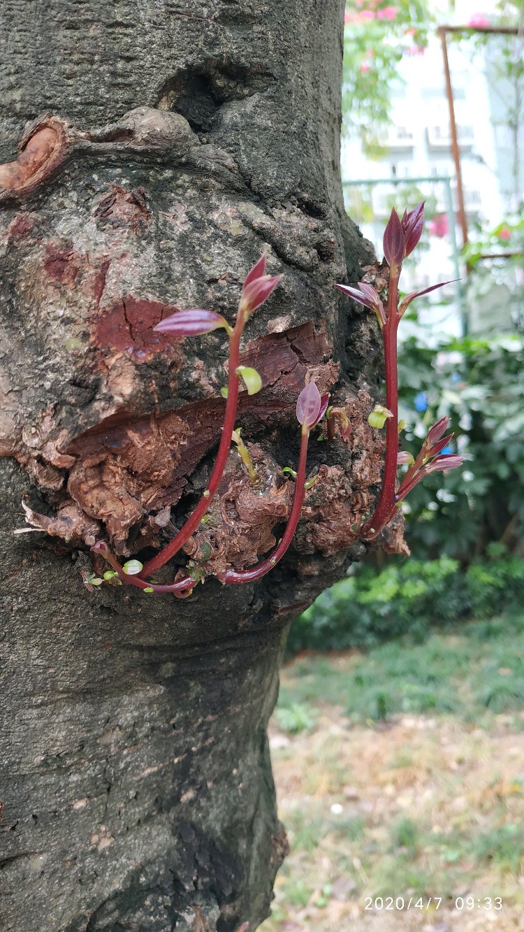 春日里阴香树遍身流淌着红色的血液,它用力把血液逼向某处,就喷出了一枝枝新芽。嫩枝的脉管流淌着的红色血液,充满了叶脉,把整片叶子也染成红色,好像能掐出血红的汁液来。