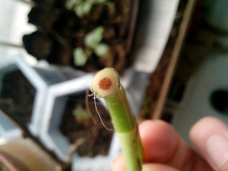 枝条的中心也已经变色成这样的,有人知道是怎么回事吗?