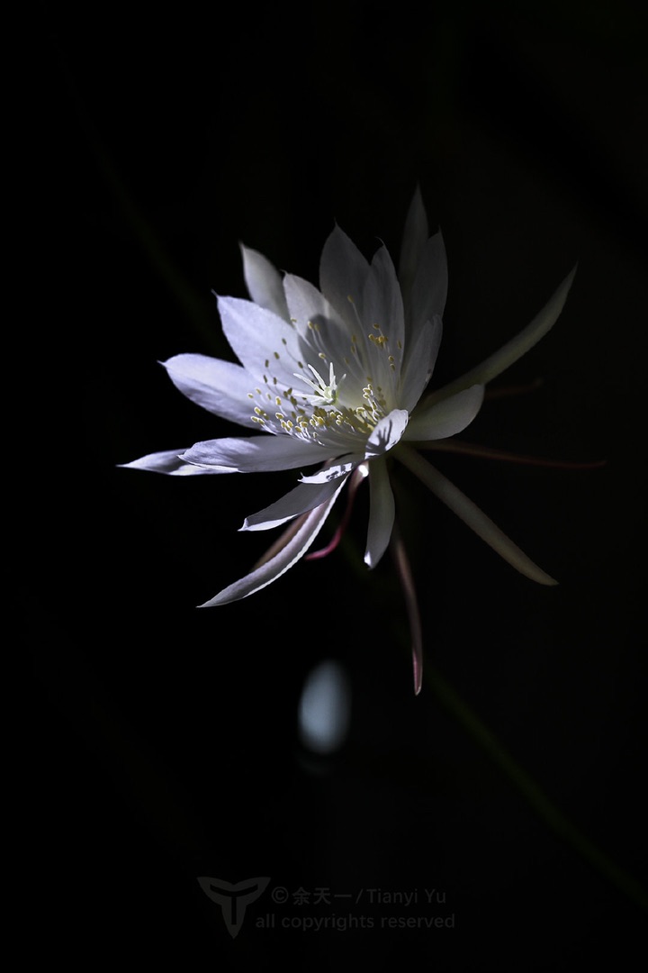 附生肉质灌木,高2~6米,老茎圆柱状,木质化。分枝多数,叶状侧扁,披针形至长圆状披针形,边缘波状或具深圆齿,基部急尖、短渐尖或渐狭成柄状,深绿色,无毛,中肋粗大,老株分枝产生气根。花单生于枝侧的小窠,漏斗状,于夜间开放,芳香,长25~30厘米,直径10~12厘米;花托绿色,略具角,被三角形短鳞片;瓣状花被片白色,倒卵状披针形至倒卵形,长7-10厘米,宽3~4.5厘米,边缘全缘或啮蚀状。浆果长球形,具纵棱脊,无毛,紫红色。种子多数,卵状肾形,亮黑色,具皱纹,无毛。生长地海拔1000-1200米。喜温暖湿润的半阴、温暖和潮湿的环境,不耐霜冻,忌强光暴晒。昙花享有月下美人之誉。当花渐渐展开后,过1-2小时又慢慢地枯萎了,整个过程仅4个小时左右。故有昙花一现之说。世界各地区广泛栽培;中国各省区常见栽培。