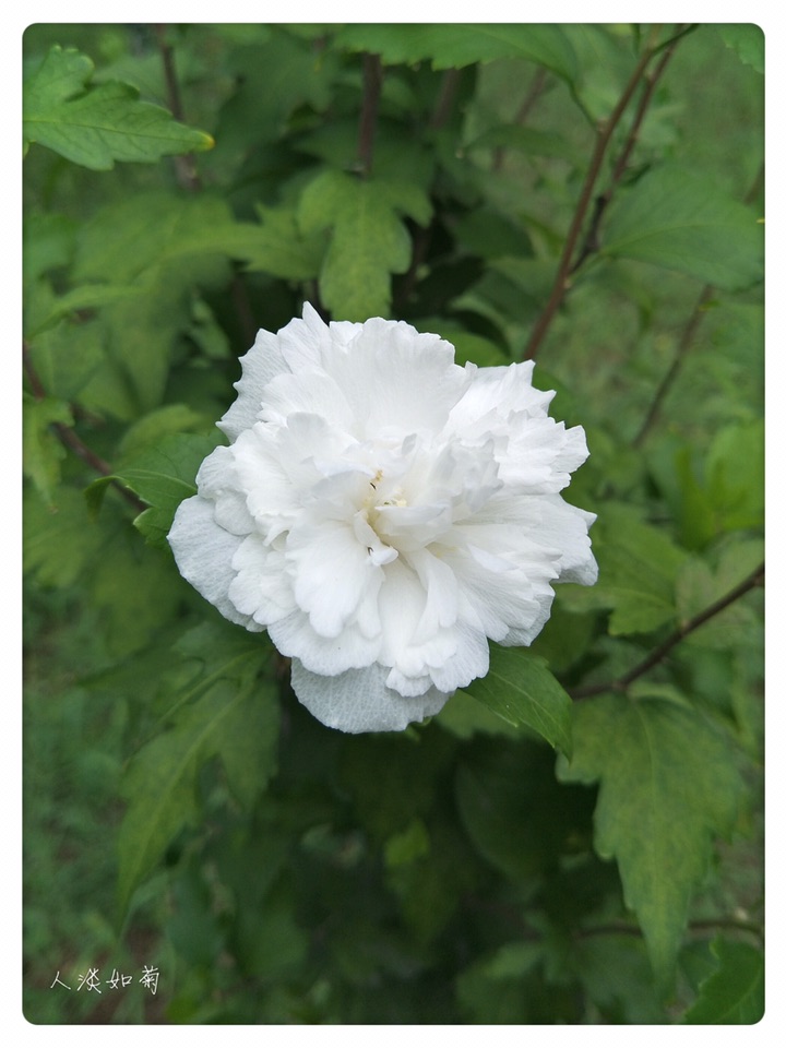 感谢女儿分享自校园的白花重瓣木槿,此花之洁白之纯粹令我心动,至今尚未亲见,期待遇见。