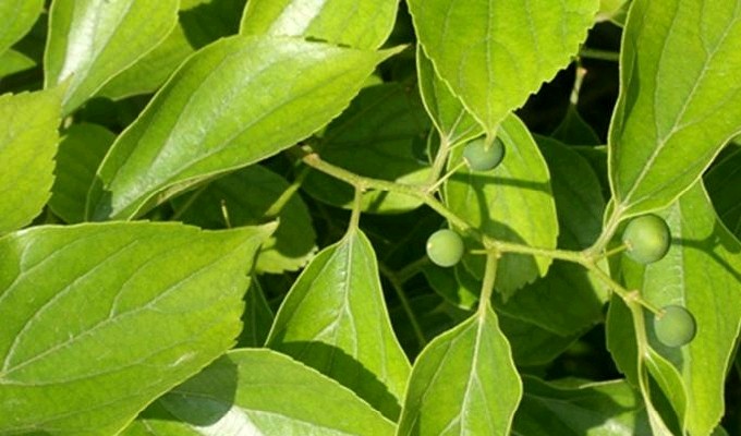 )是荨麻目榆科朴属植物,落叶乔木,高达20米。树皮平滑,灰色。一年生枝被密毛。叶互生,革质,宽卵形至狭卵形,长3-10厘米,宽1.5-4厘米。花杂性(两性花和单性花同株),1-3朵生于当年枝的叶腋。核果单生或2个并生,近球形,熟时红褐色,果核有穴和突肋。花期4-5月,果期9-11月。