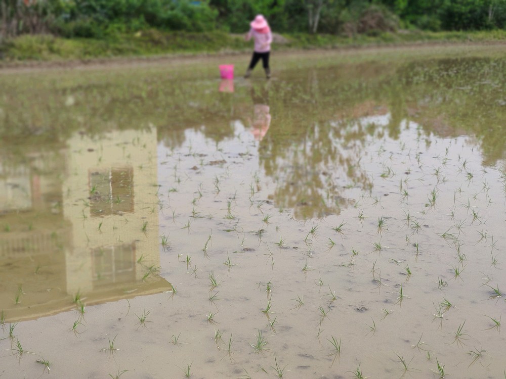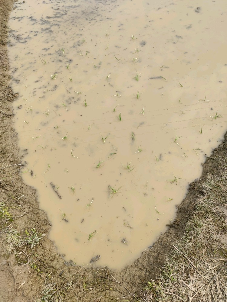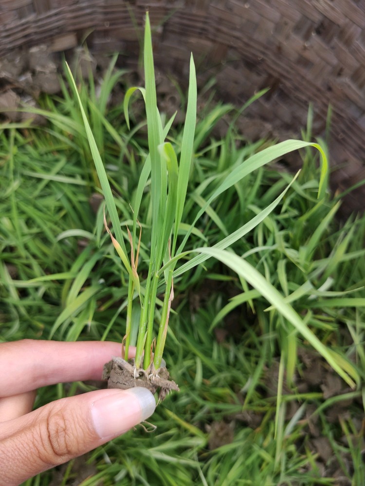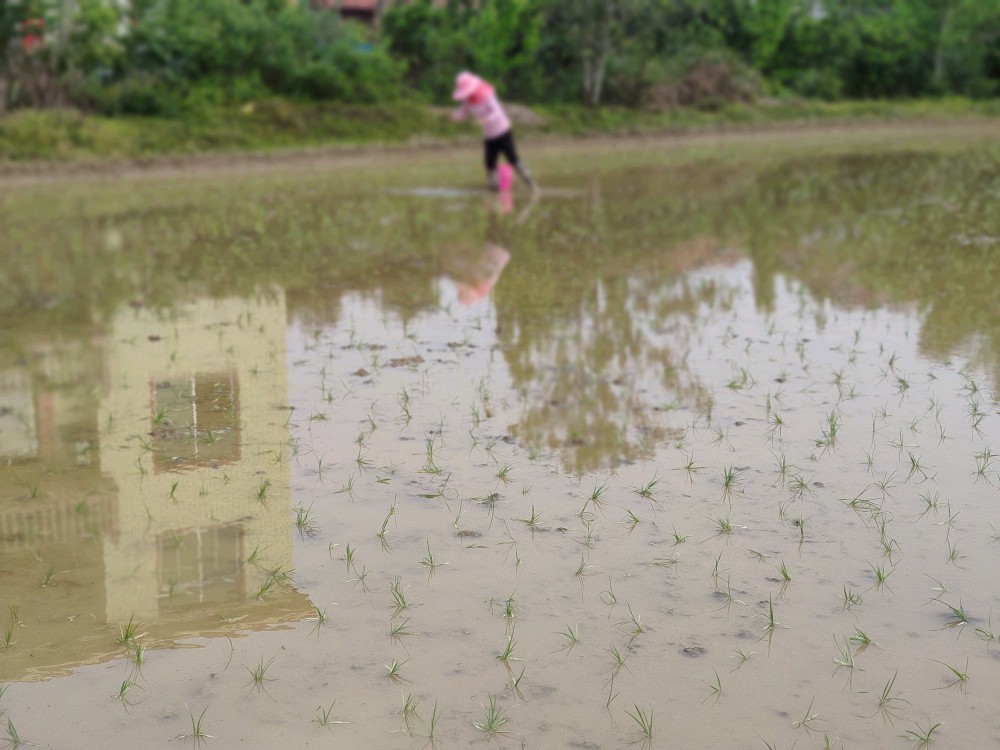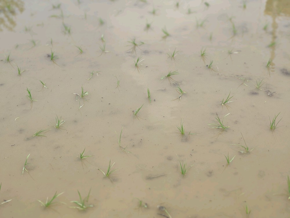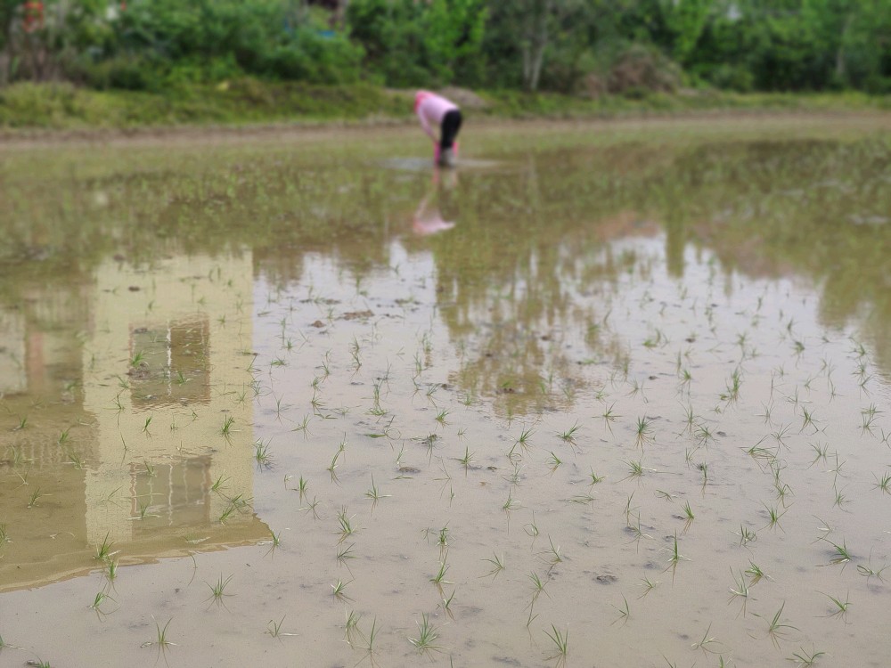 我家的粮食一般自给自足,2亩地足够了。品种是今年老爸新物色的,据说特别好吃。由于前段时间的降温,这秧苗也几乎冻死,你看这蔫儿吧唧、矮小瘦弱的样子,确实有点惨不忍睹。