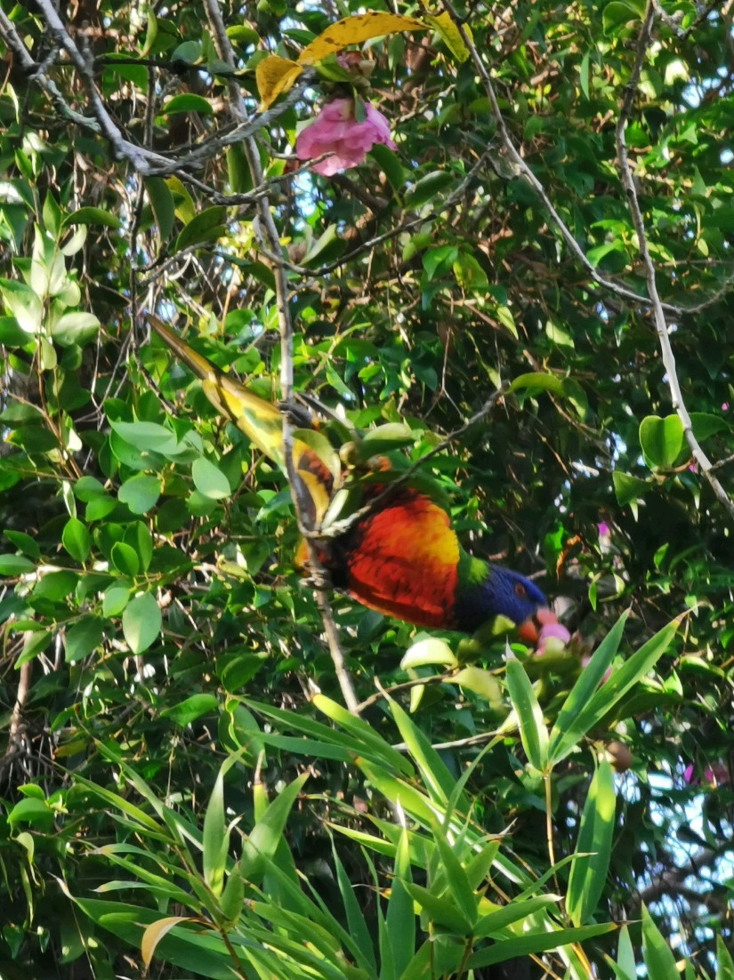 彩虹鹦鹉一呆就是几小时,花里有好食的东西,是花蜜?还是花粉?