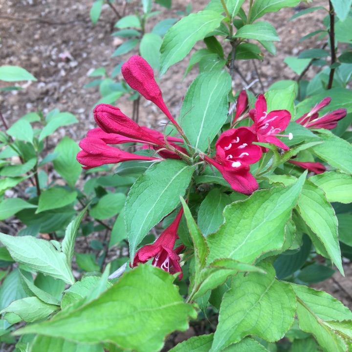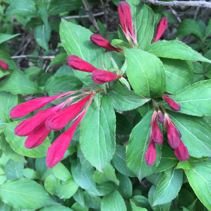 锦带花属于灌木,多种在绿化带的路边。大红色的锦带花含苞待放时最美,一簇簇纺锤形的花骨朵散落在翠绿的叶丛中,特别吸睛。