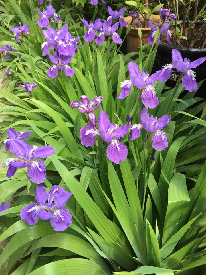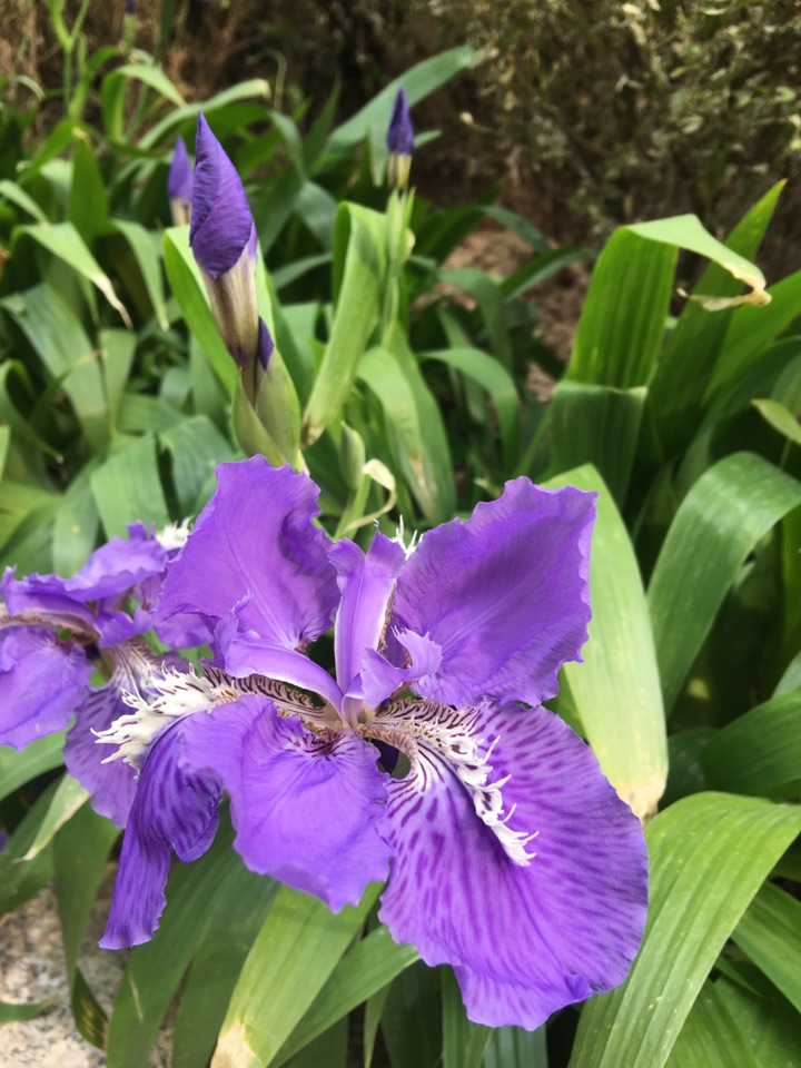 鸢尾花也叫菖蒲,属于百合科植物。有黄、紫等多种颜色。我们小区里的全是紫色。娇媚又硕大的花朵在风中摇曳生姿,真有鸳鸟翱翔时尾翼摇摆的气势。
