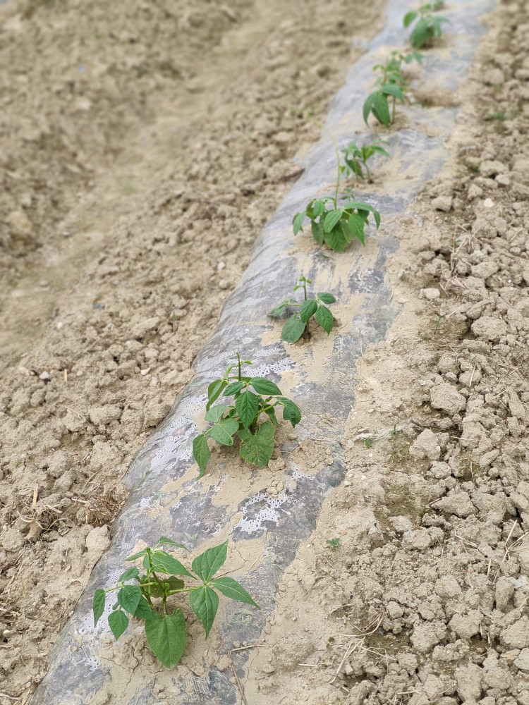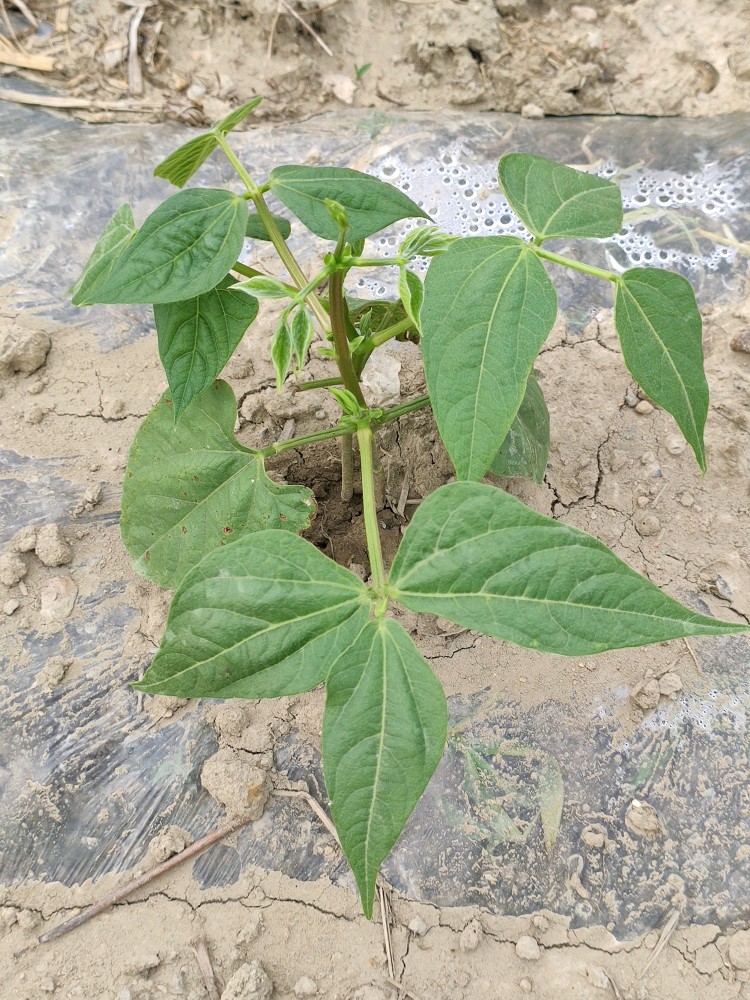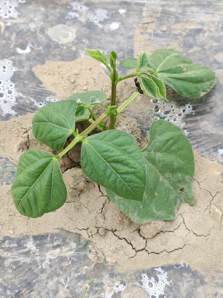 这8棵不搭架豆角是同土花豆角同时播种的,不过它晚出来了一天。所以之前亮相的都是土花豆角,这个从来没拍过它。