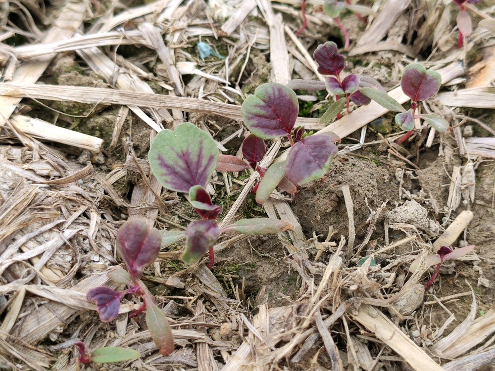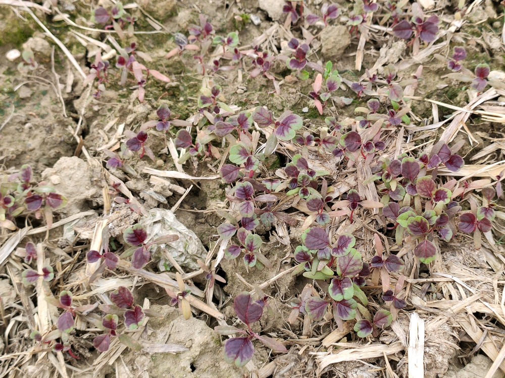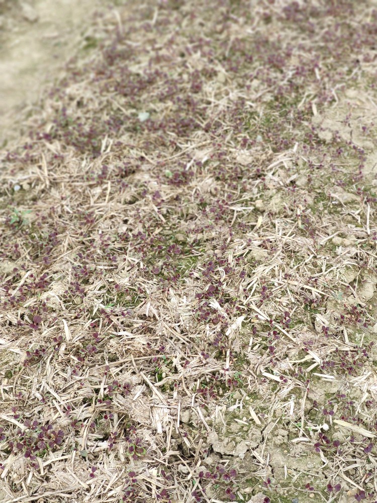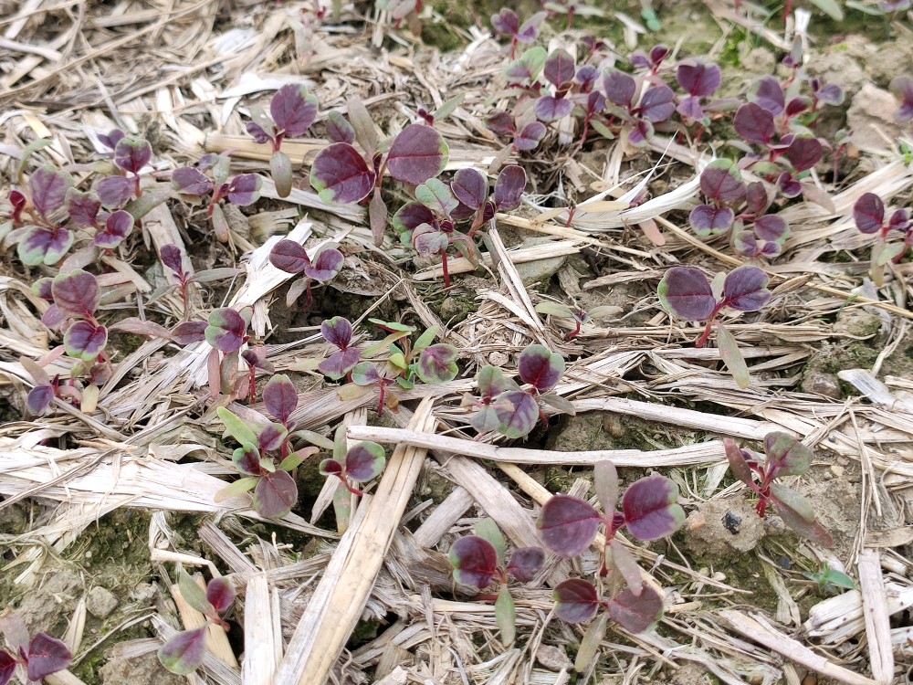 这苋菜都让我老爸给霍霍了,5包种子的量它就给我撒了这么一小段地儿。原本我是计划着分批次撒下去的,他倒好一次性给我整没了。等种子发芽那叫一个密密麻麻,细思极恐。被鸡刨食了很多,再加上冻死了好些,你看现在也是密的不像话。