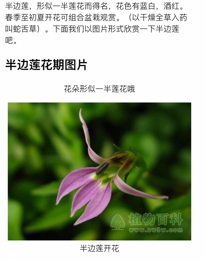 植物百科 半边莲