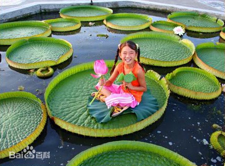 该属植物均是热带著名水生庭园观赏植物,具有世界上水生植物中最大的叶片,直径可达3米以上,叶面光滑,叶缘上卷,犹如一只只浮在水面上的翠绿色大玉盘;因其叶脉与一般植物的叶脉结构不同,成肋条状,似伞架,所以具有很大的浮力,最多可承受六七十千克重的物体而不下沉。