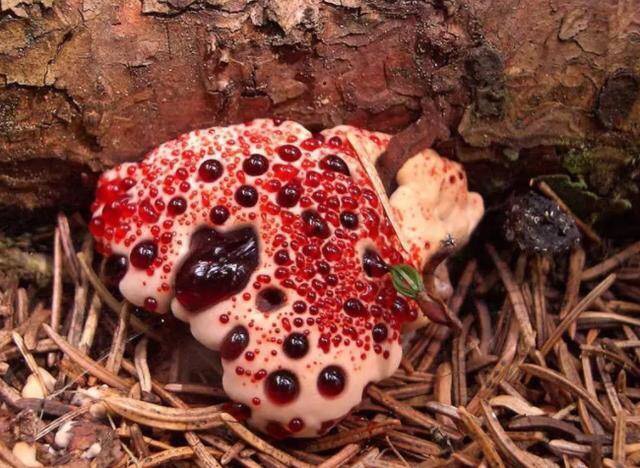 佩氏亚齿菌是一种特殊的真菌,在其表面会产生像血液一样的液体,这种奇怪的植物主要分布在北美和欧洲,是可以食用的,但是味道极其苦涩。