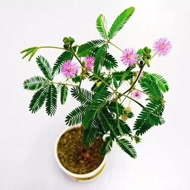 含羞草的叶片一碰就会蜷缩起来,是非常有趣的植物,当然不能经常把玩,它的叶子还具有日开夜合的特性,喜欢常年温暖湿润的环境,养护的注意等盆土干透浇透,养护的位置如果有适当的光照,这些含羞草还能开出粉红色的绒毛球花朵。
