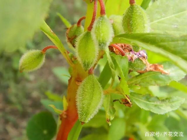 凤仙花的花朵授粉成功之后会结出果荚,这些种荚只需要用手一碰就会爆裂弹开,非常可爱,种子会散落到四周,实现自播繁殖。