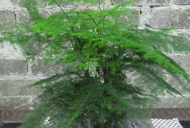 3、浇水不宜过多,掌握见干见湿的浇水原则。肥料每月施用一次可满足生长需要。一二年生的文竹最具观赏价值。三年生的文竹开始抽生枝蔓,应设立支架供其攀缘。若不想设立支架,也可将具攀缘性的枝条齐根部剪去。文竹不耐寒,越冬温度10℃。