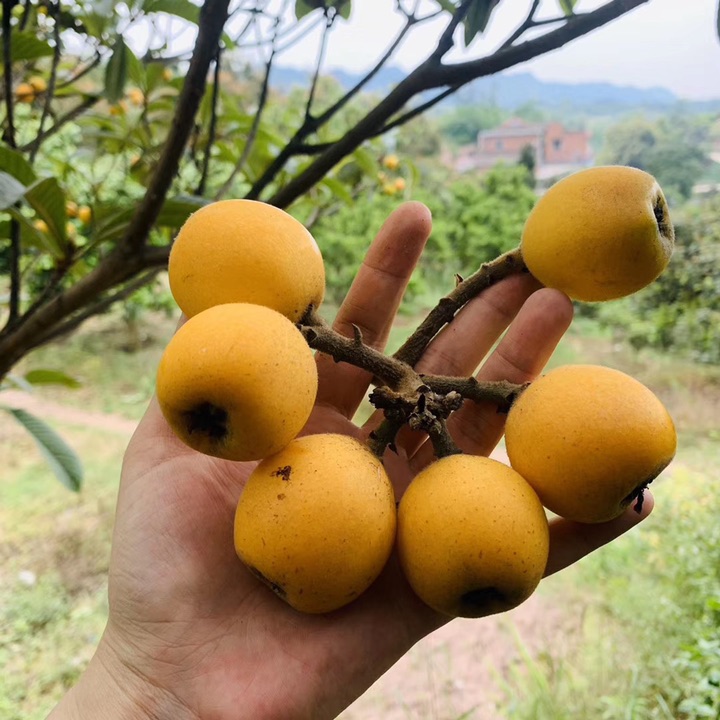 树高3~5米,叶子大而长,厚而有茸毛,呈长椭圆形,状如琵琶。别名又叫芦橘、芦枝、金丸、炎果、焦子。枇杷与大部分果树不同,在秋天或初冬开花,果子在春天至初夏成熟,比其它水果都早,因此被称是“果木中独备四时之气者”。枇杷的花为白色或淡黄色,有五块花瓣,直径约2厘米,以五至十朵成一束,可以作为蜜源作物。
