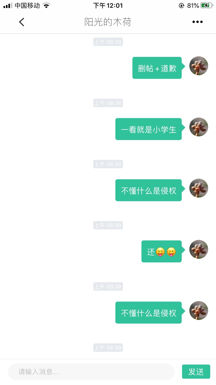 上次那个正经的604盗我图,这次又来一个,你盗我图你有理了是吧,还不理我,你咋不上天呢你!侵权不说,连帖都不删,说得好像我错了一样。官方赶紧处理,举报一天了没人管,他不讲理官方也不管吗?!