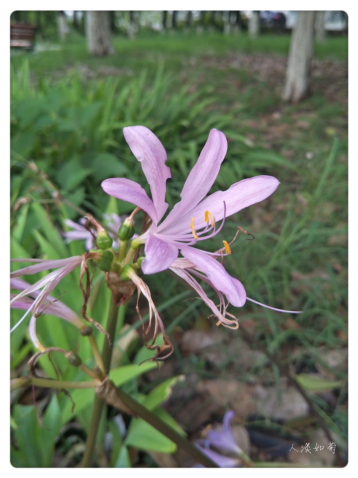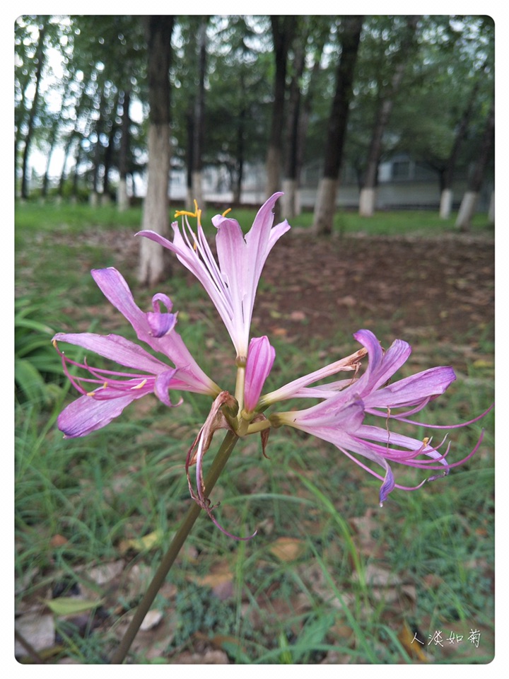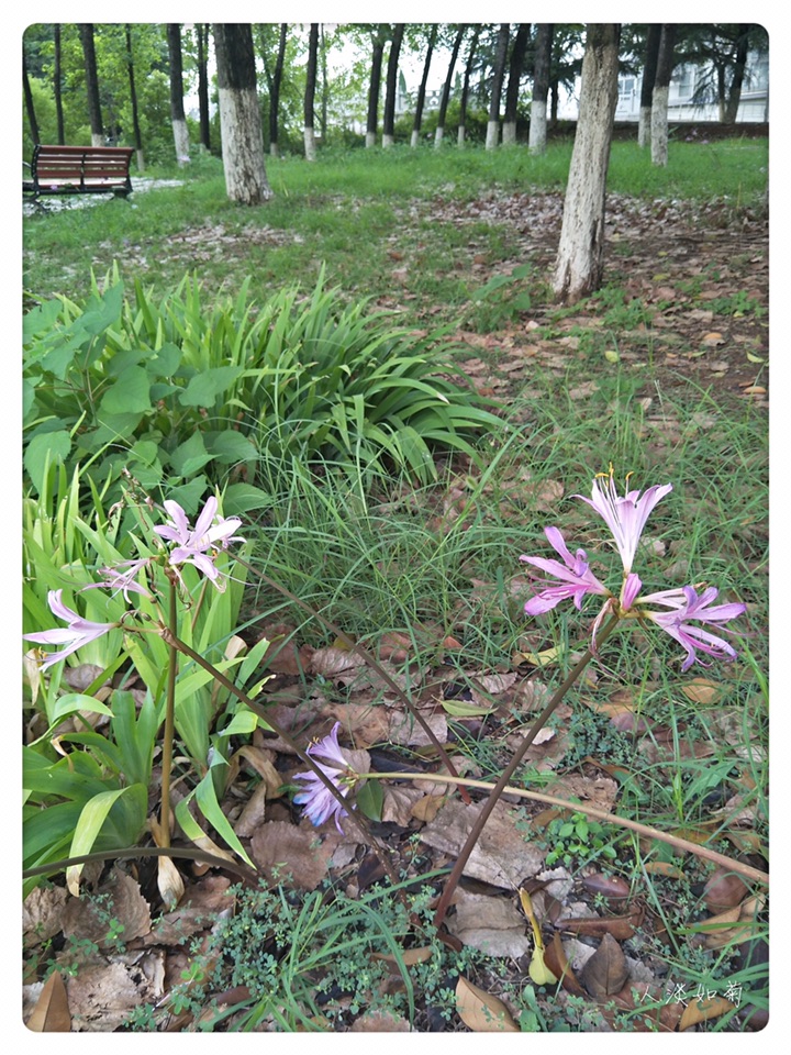 石蒜科花叶两不见的植物我还没有亲见过,一直想与曼珠沙华有次相遇,至今未能如愿。感谢女儿分享自校园的换锦花,它也是花叶两不见的植物。