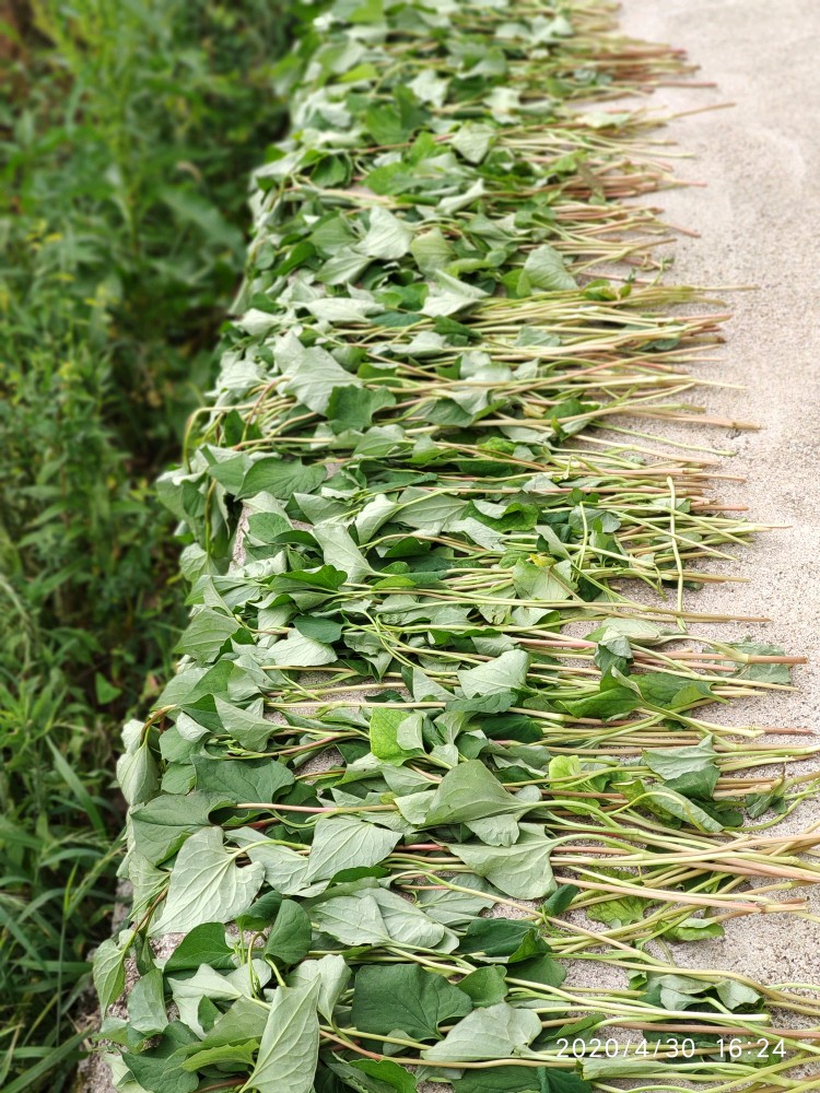 对了,我们割了是用来泡水喝的。把割下来的鱼腥草洗干净,然后太阳底下稍稍晒晒,再拿到阴凉通风处让它自然风干。炎炎夏日煮上一壶,随时喝上几口,可以防中暑,且清热解毒!