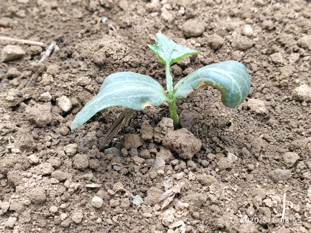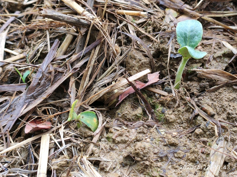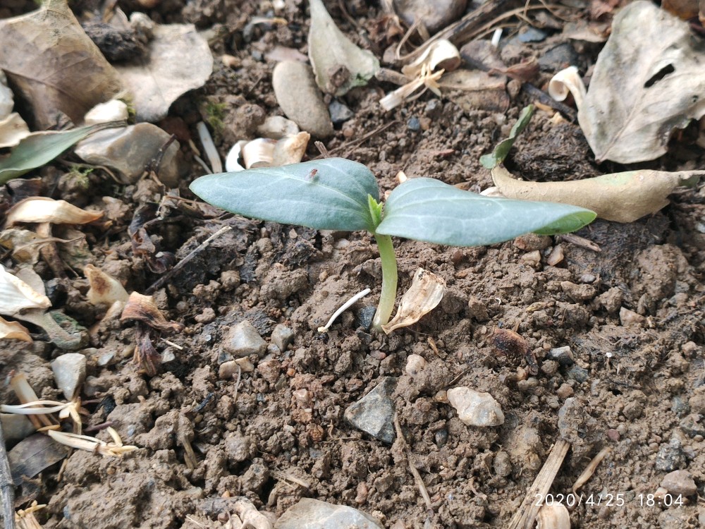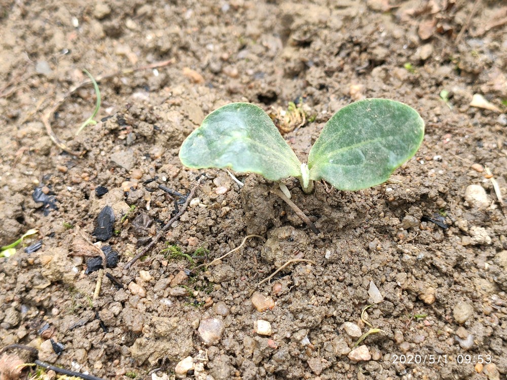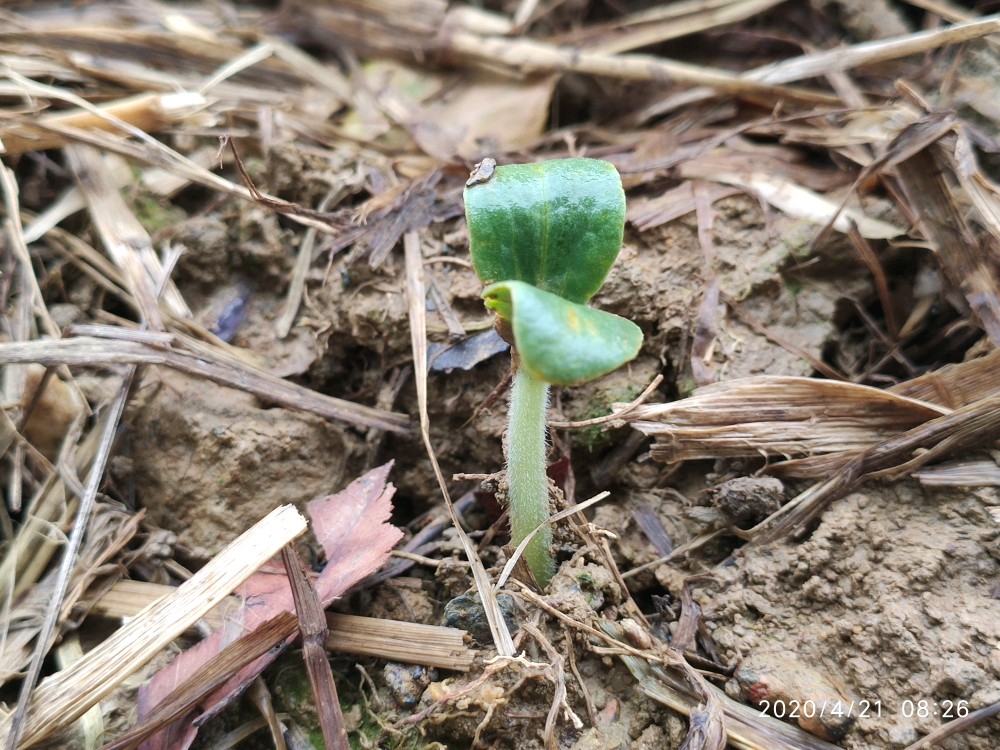 这是之前撒的南瓜种子,撒了5粒长了3棵出来。这是它的初发芽光景以及它的生长状态