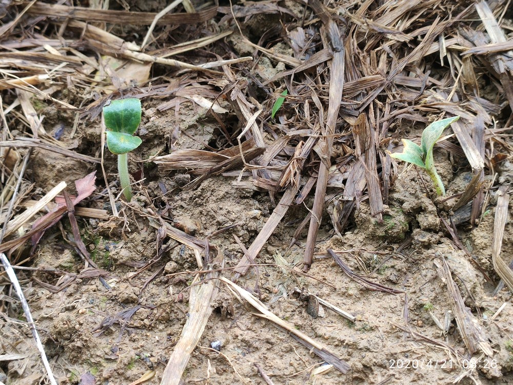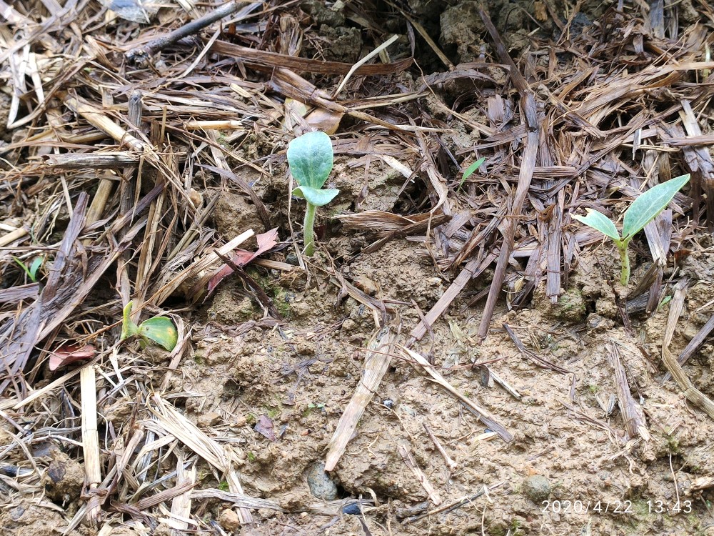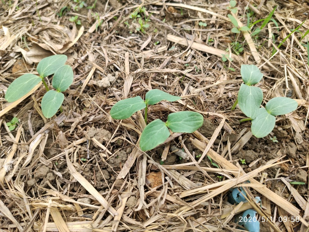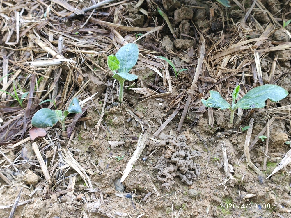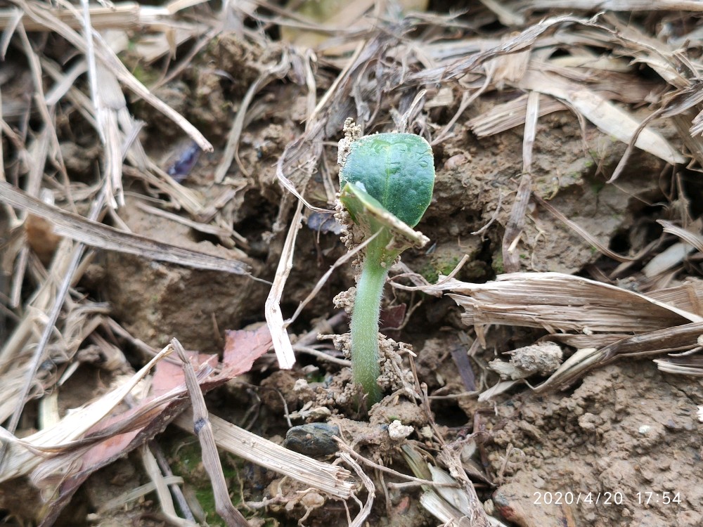 这是之前撒的南瓜种子,撒了5粒长了3棵出来。这是它的初发芽光景以及它的生长状态