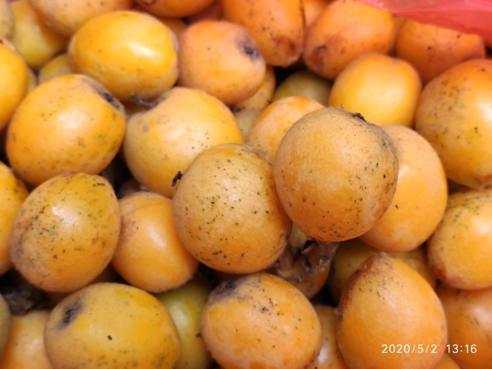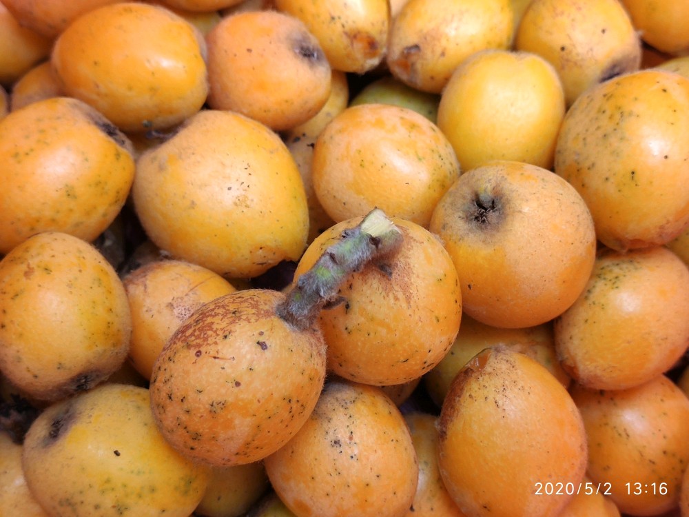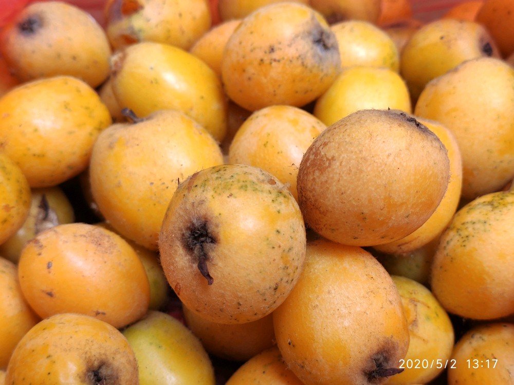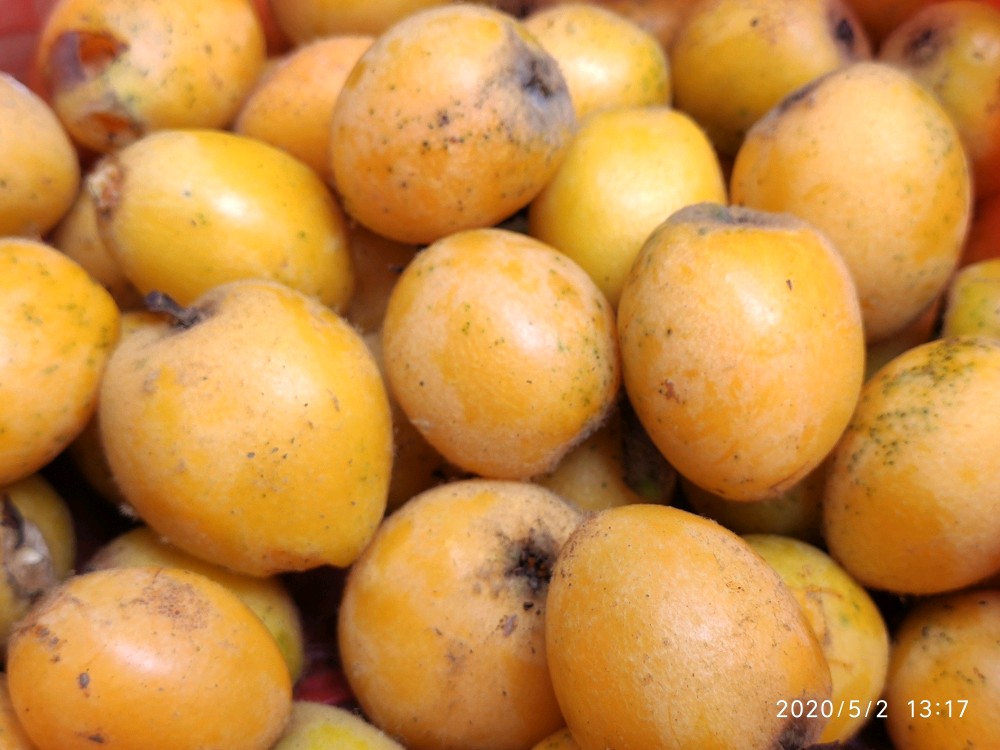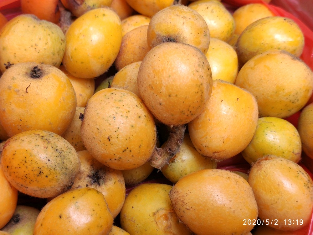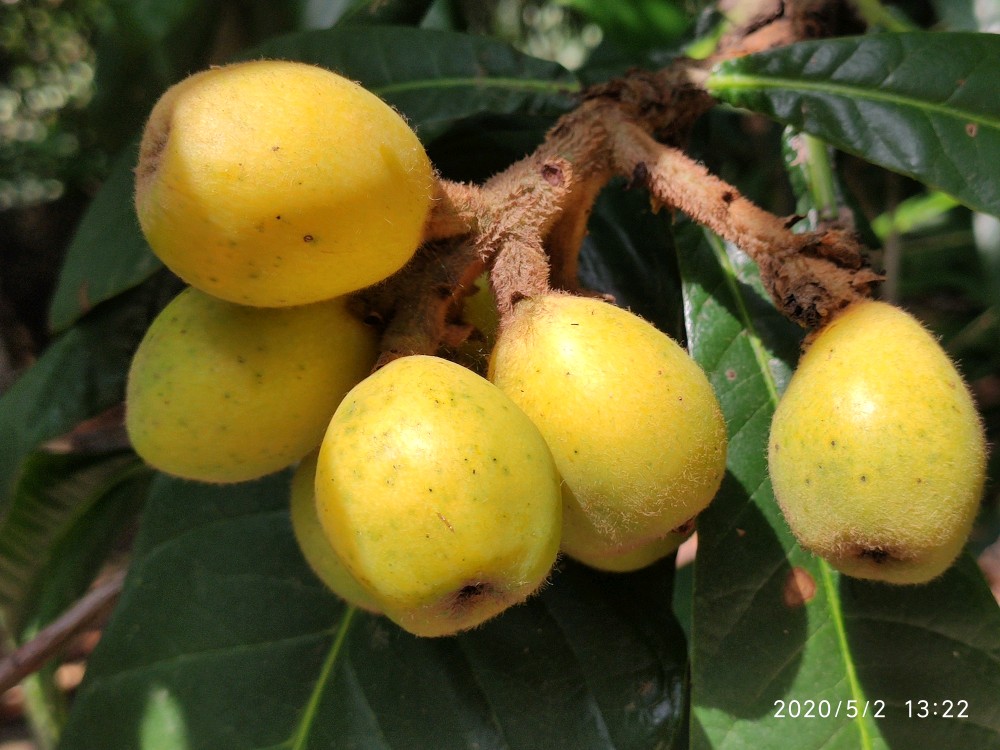 变黄的过程是显而易见的,一个晚上的功夫树上的黄便加深一个色号。低矮处的枇杷没那么熟,吃起来还有点酸。树梢上的那叫一个黄灿灿甜滋滋,可惜够不着,今天又逮了老爸上树摘了一点