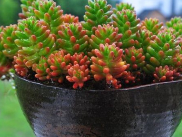 婴儿手指一般的叶子,在春天到夏天的繁殖期里呈美丽的绿色。秋冬开始红叶,阳光充分且干燥的环境下能愈发变成红色。如果阳光不足,植物的茎会伸长。能从掉落下来的叶子上发根,种植简单。土完全干了再浇水,夏季避免暴晒。冬季气温低时也要减少浇水。花是黄色的星形,在春天开放。