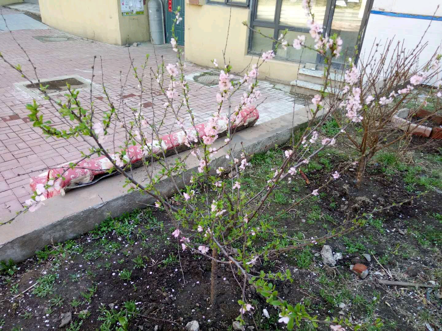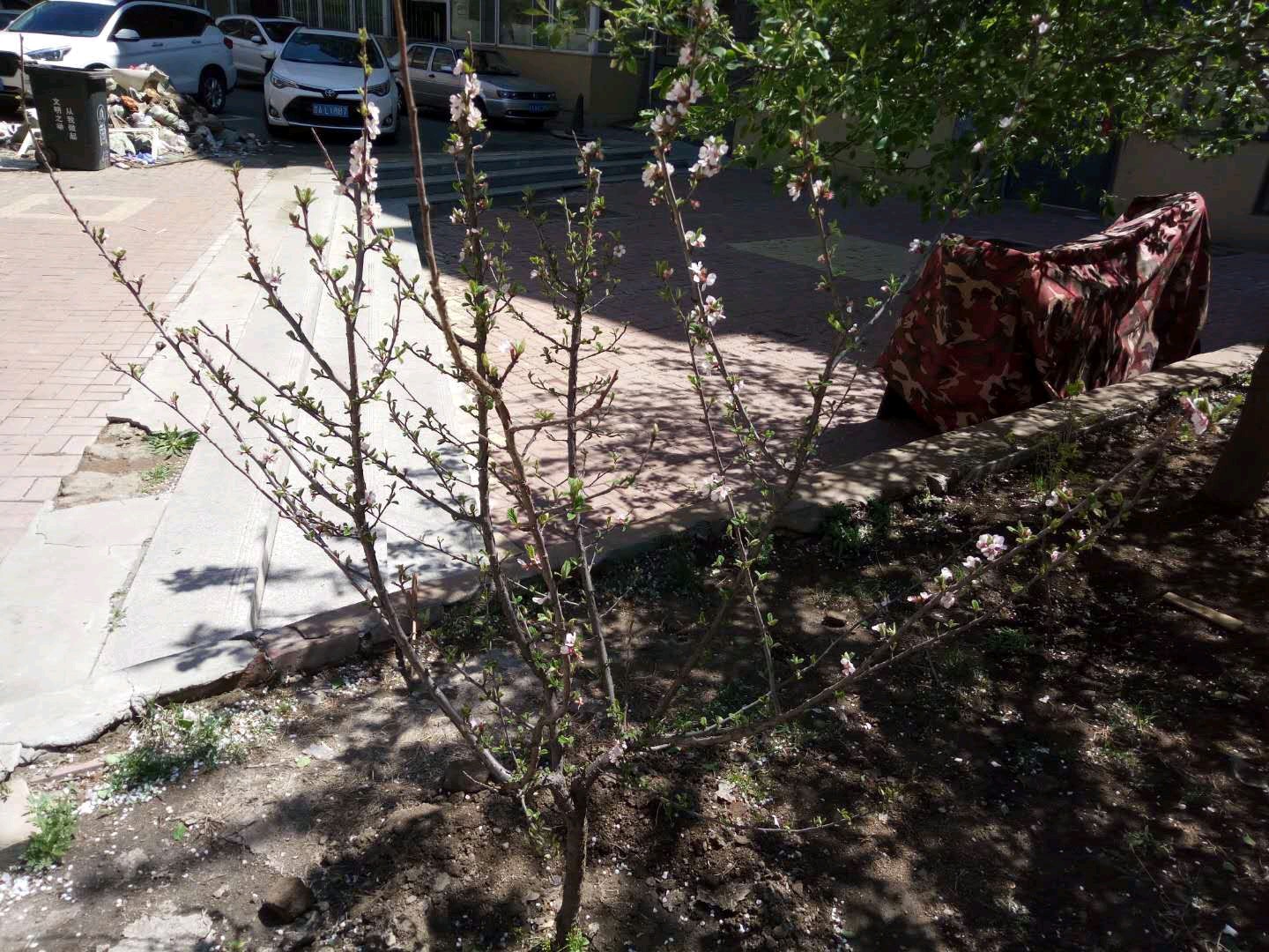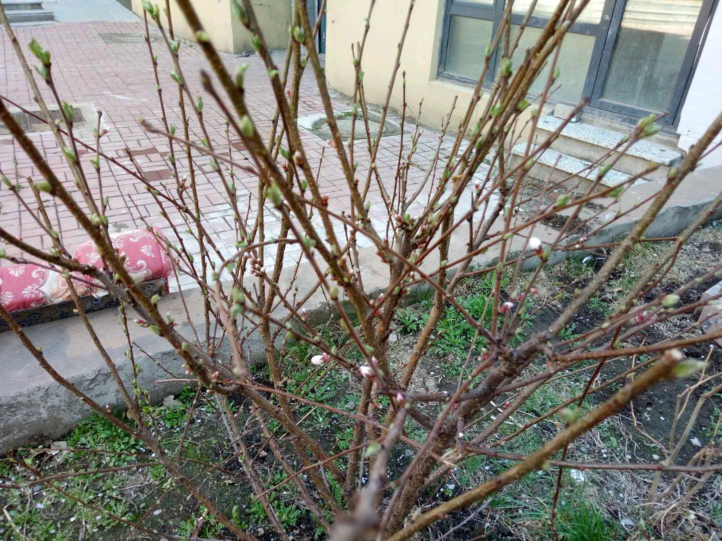 我前段时间种的榆叶梅两棵都开花了,第三棵由于来的时候芽点就不太饱满。所以现在刚打花苞。