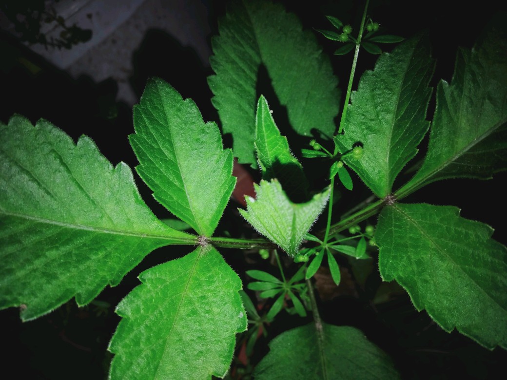 菊花的叶子大家都很熟悉吧,大丽花的叶子,大橘现场拍了一张(有乱入的猪殃殃😳)