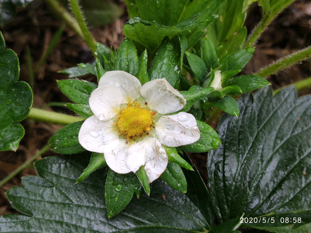 草莓新开了几朵花,这花比较大,想必以后结的果子也是个个大吧