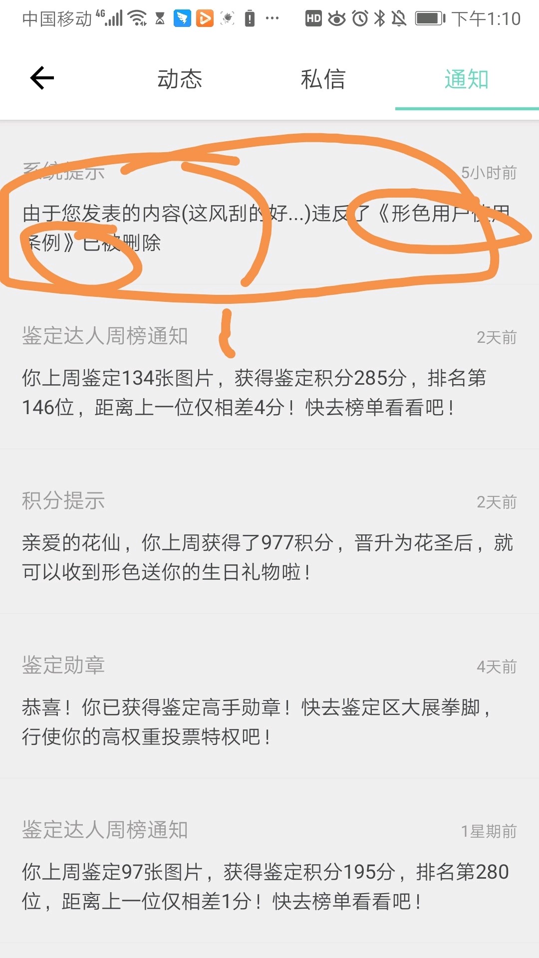 我发了(这风刮的好大哦!)的话题,结果系统提示说我违反了形色用户使用条例,形色用户使用条例在哪儿?我怎么没有看到?求各位大神指点,这样的话小妹我就知道自己违反了哪一条,就可以改正我的错误啦😊