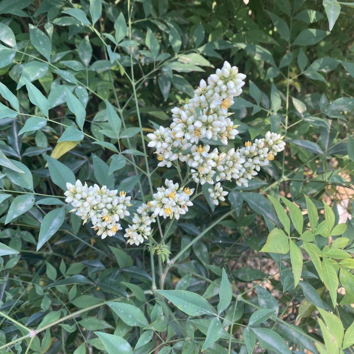 南天竹,别名:南天竺,红杷子,天烛子,红枸子,钻石黄,天竹,兰竹;拉丁文名:Nandina domestica.属毛茛目、小檗科下植物,是我国南方常见的木本花卉种类。由于其植株优美,果实鲜艳,对环境的适应性强,常常出现在园林应用中。常见栽培变种有:玉果南天竹,浆果成熟时为白色;绵丝南天竹,叶色细如丝;紫果南天竹,果实成熟时呈淡紫色;圆叶南天竹,叶圆形,且有光泽。因其形态优越清雅,也常被用以制作盆景或盆栽来装饰窗台、门厅、会场等