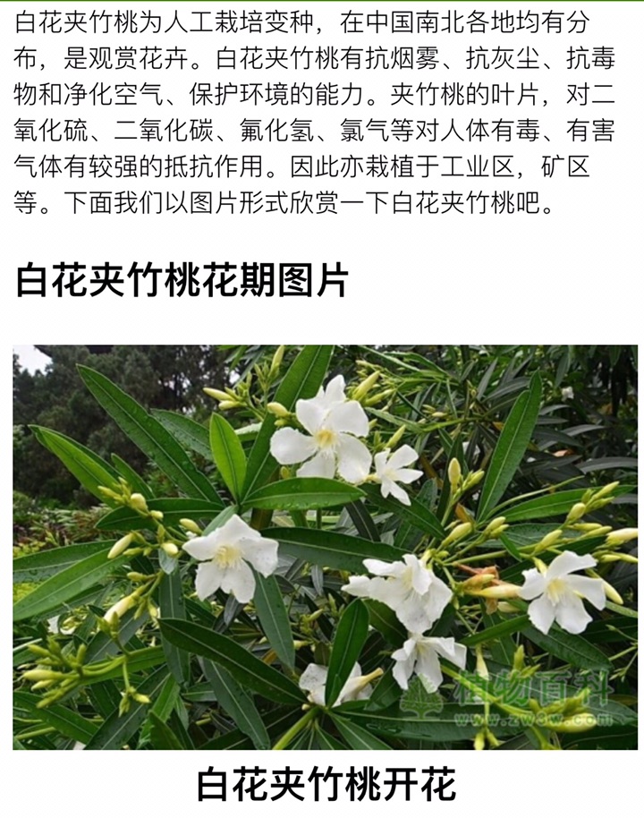 好像白花夹竹桃和红花(欧洲)夹竹桃仅仅只是颜色的不一样?