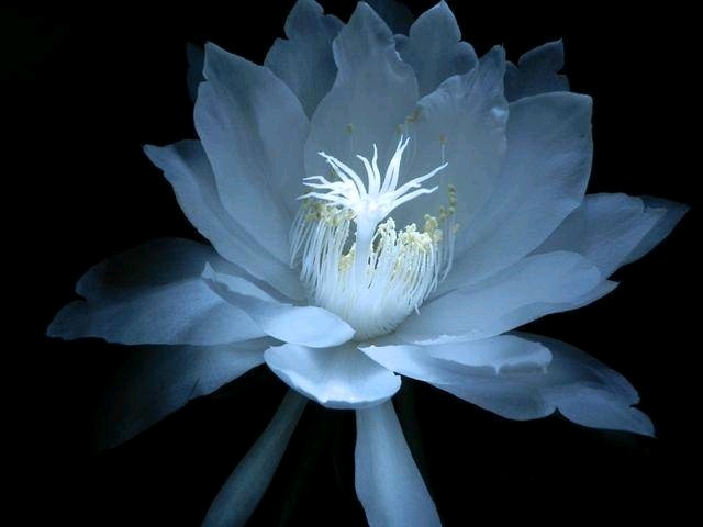 昙花大而洁白芬芳,只在暮色降临后绽放,在月色下宛如一个含羞而笑的姑娘。
