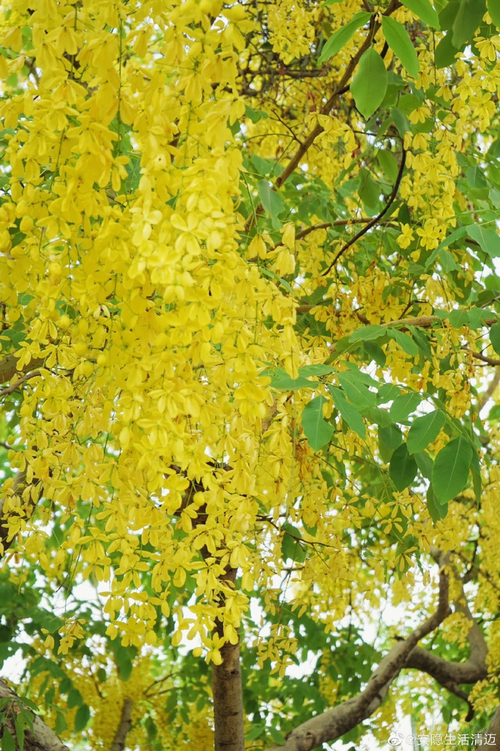 腊肠树(学名:Cassia fistula L.):落叶乔木,高可达15米;枝细长;树皮灰色,老时粗糙,暗褐色。叶长30-40厘米,小叶对生,薄革质,阔卵形,卵形或长圆形,边全缘,幼嫩时两面被微柔毛,老时无毛;叶脉纤细,两面均明显。总状花序长达30厘米或更长,疏散,下垂;花与叶同时开放,直径约4厘米;花瓣黄色,倒卵形,近等大,具明显的脉。荚果圆柱形,长30-60厘米,黑褐色,不开裂,有槽纹;种子40-100颗,横隔膜所分开。花期6-8月;果期10月。中国南部和西南部各省区均有栽培。原产印度、缅甸和斯里兰卡。该种是南方常见的庭园观赏树木,树皮有单宁,可做红色染料。根、树皮、果瓤和种子还可入药作缓泻剂。木材坚重,耐朽力强,光泽美丽,可作支柱、桥梁、车辆、农具等用材。腊肠树是泰国的国花。(概述图片参考资料来源
