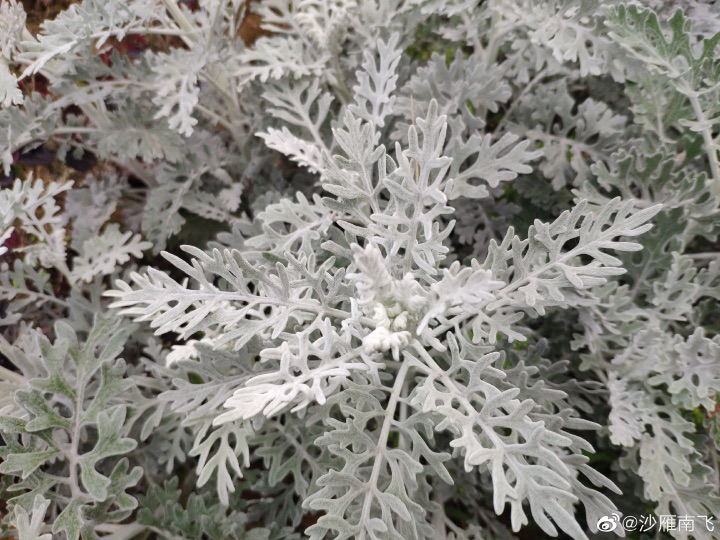 银叶菊(学名:Jacobaea maritima (L.) Pelser & Meijden)是菊科,千里光属多年生草本植物,全株终身银白色,正被面均有绒毛,分支性强,丛生状,叶片质较薄,缺裂,如雪花图案,头状花序单生枝顶,花小、黄色,花期6-9月,原产巴西。较耐寒、耐旱,喜阳光充足的环境。