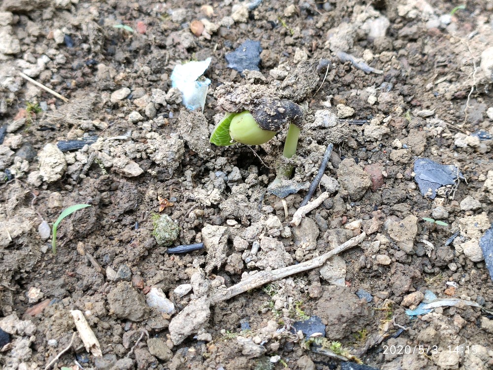 其实枣树下还播了一处,可惜没能长出来。前天刚补了一棵钥匙豆在那里,也活了。
