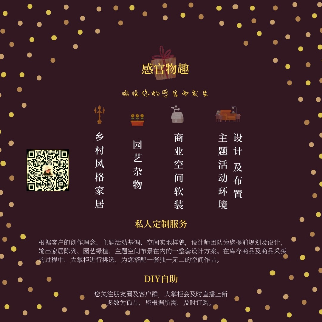 从喜欢花,流转到喜欢乡村做旧杂物,从自己疯狂的买,到带着大家一起淘,享受鲜花绿植陪伴的日子,享受物趣好物相伴的时光🍏