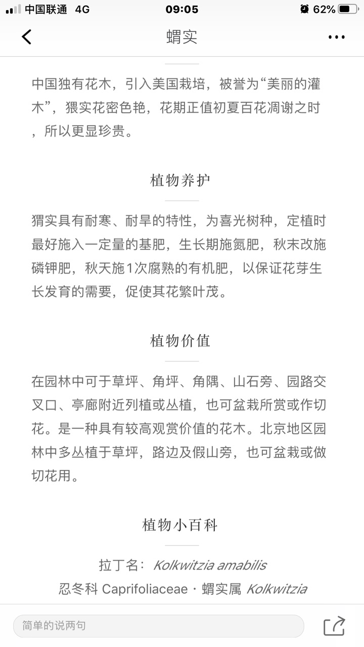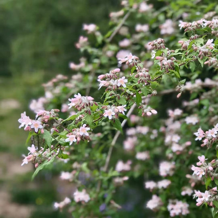 猬实和金银木一样同属于忍冬属植物,也在春天开花,形成一幅幅美丽的粉色花瀑。花谢后,果实毛茸茸的,像一群刺猬蹲满树头。