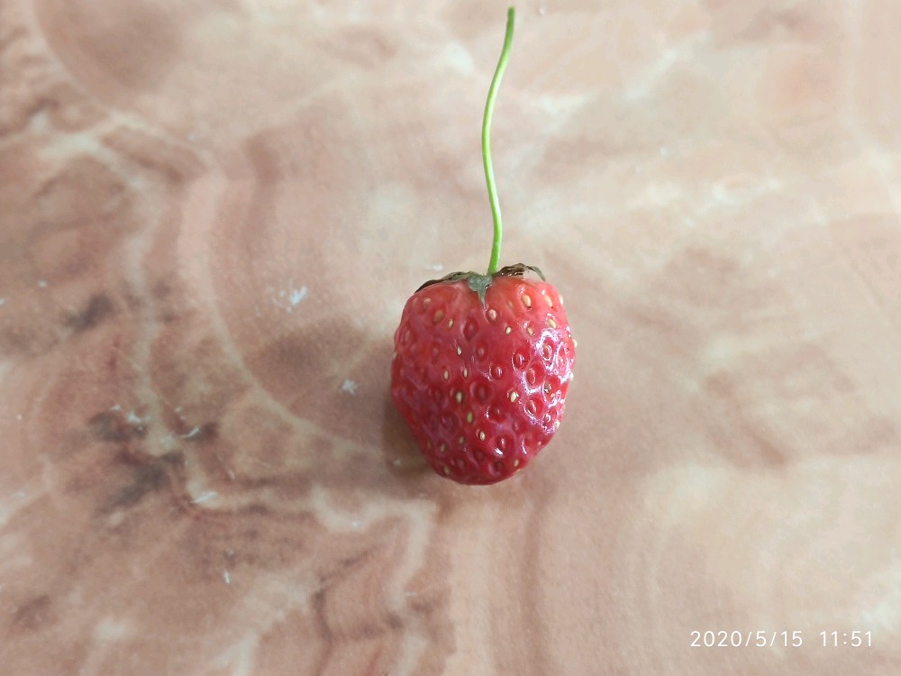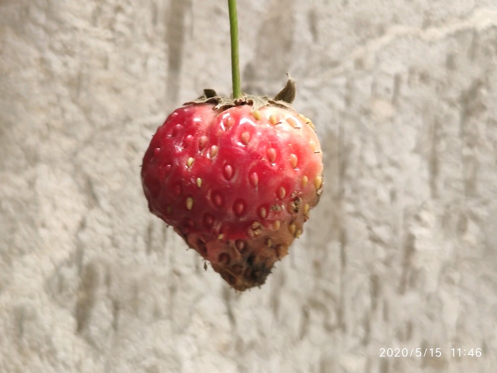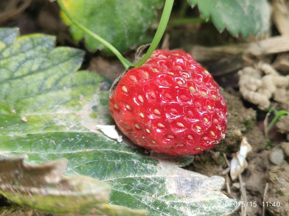 前两天走之前特意看过它,也给它拍了照。奶白色的小小果子诱人的躲在硕大的叶片下面。怕老妈直接忽略它,也想让她吃下草莓的第一果。硬生生的抽回了想摘它的小手。并跟老妈说,让她记得明天把果子摘了吃掉,不要等我回来不然它都要烂在地里了。