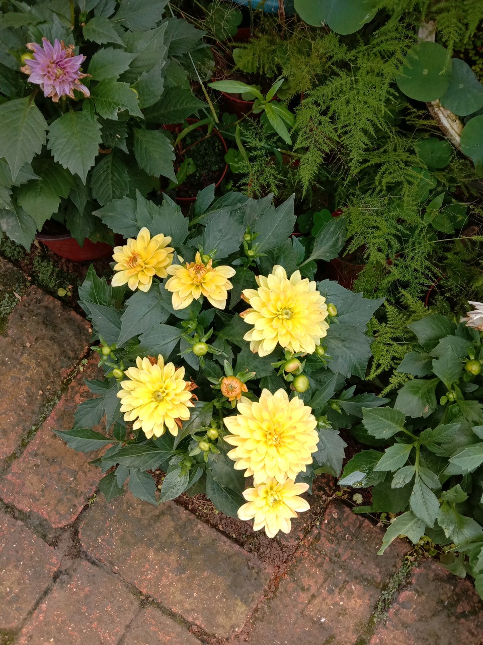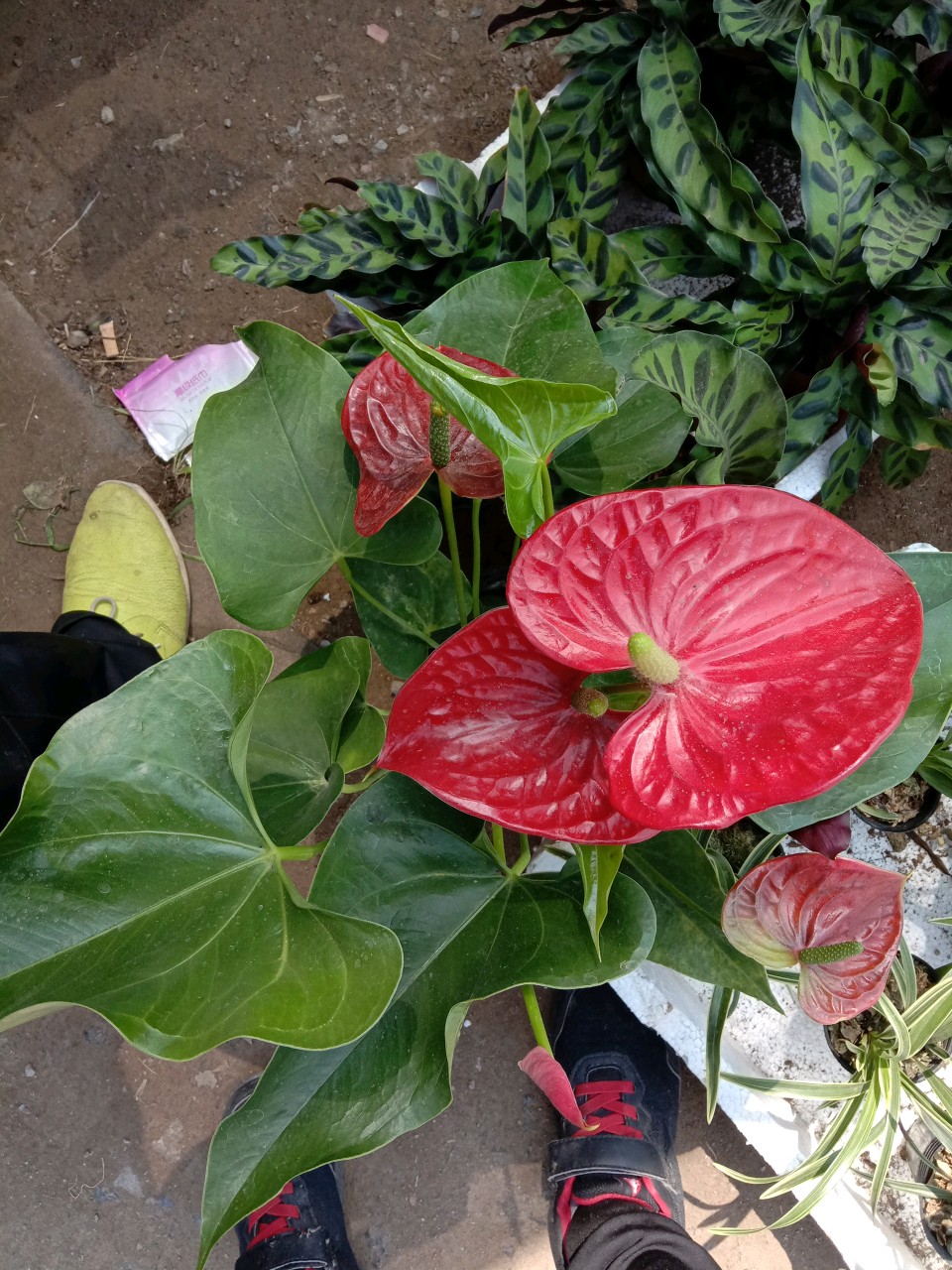 第一个是红掌,又名花烛;黄色的不清楚;后面几朵都是绣球花